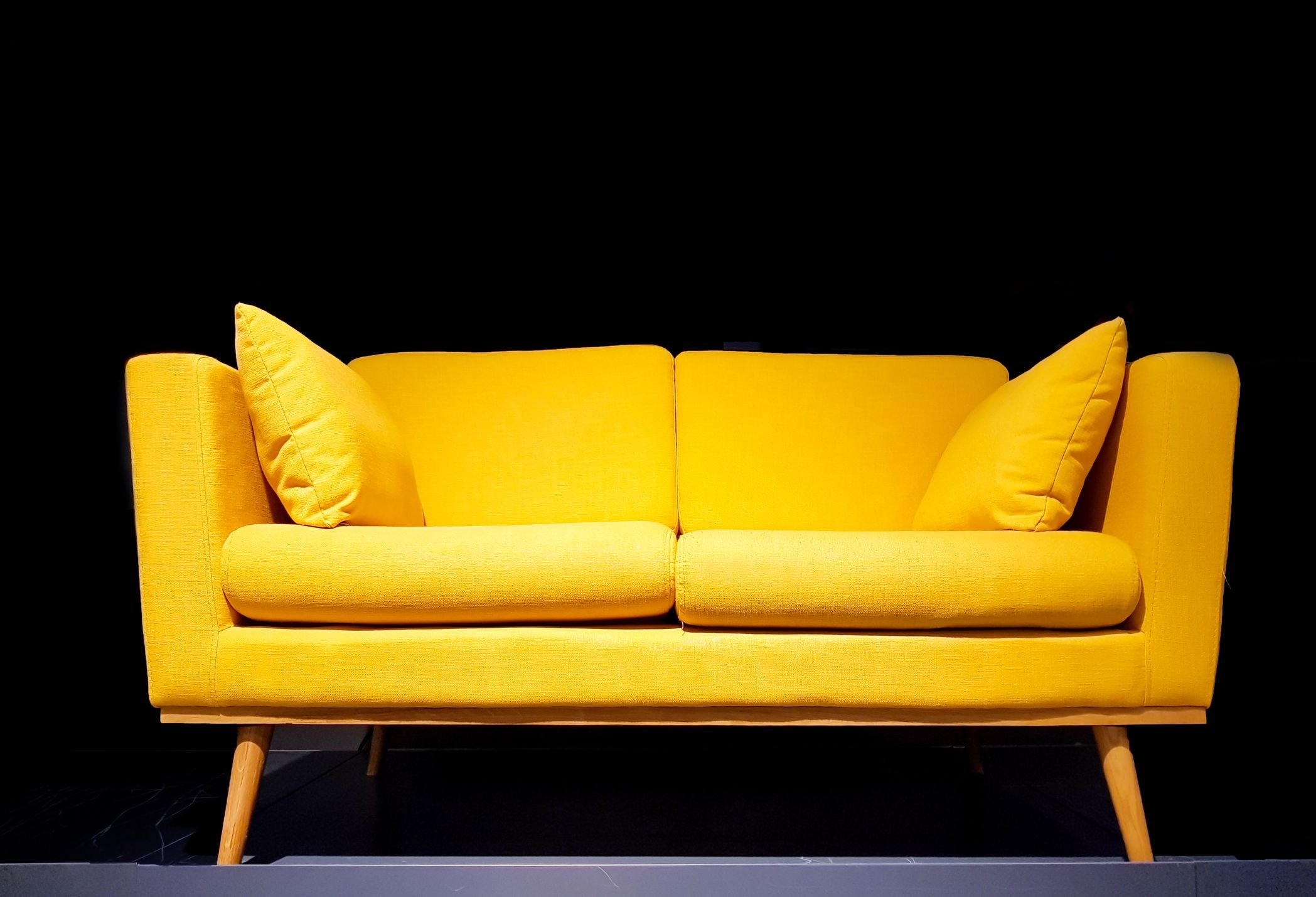 Желтый диван на черном фоне
