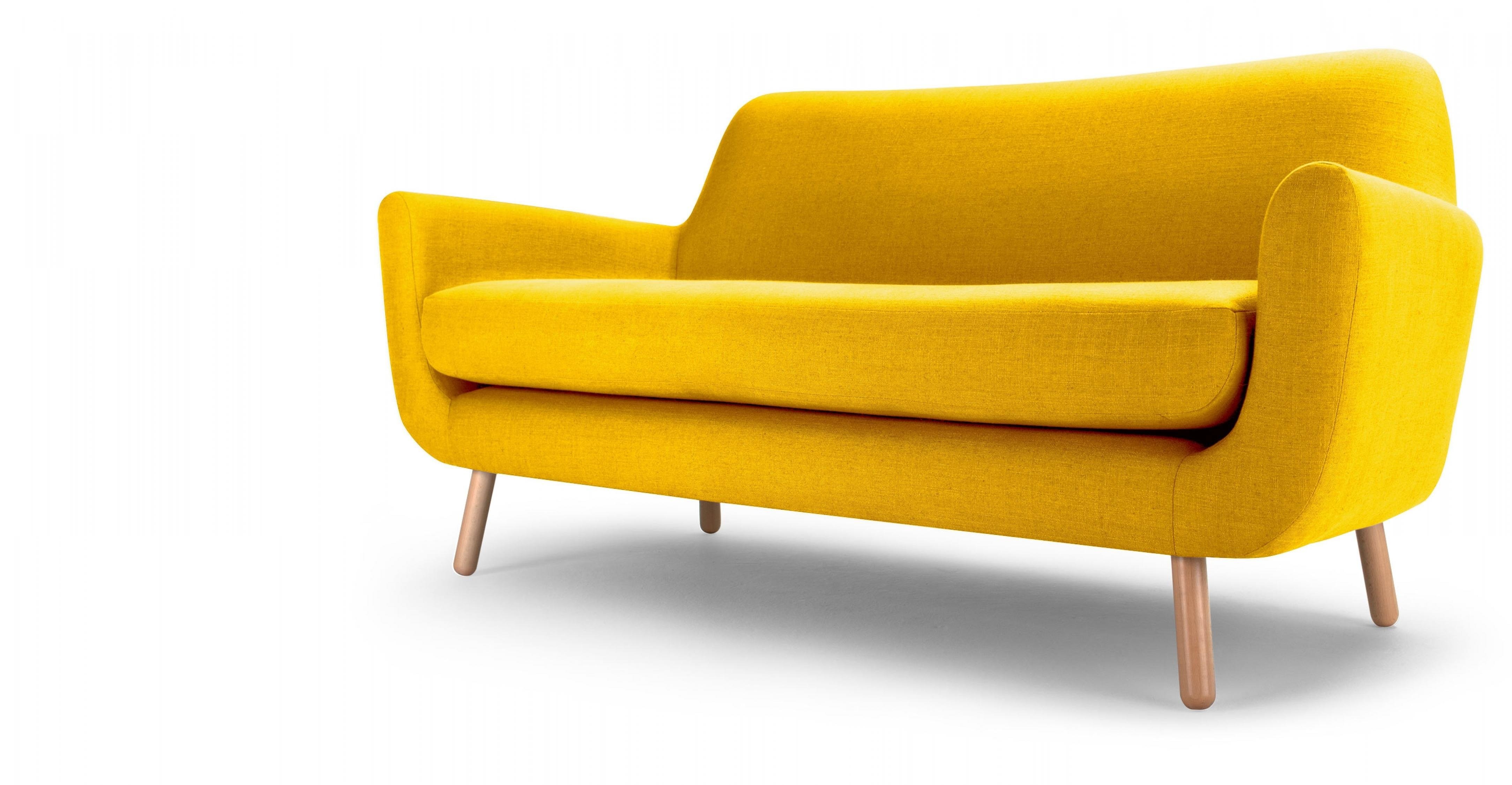 Желтый диван на белом фоне
