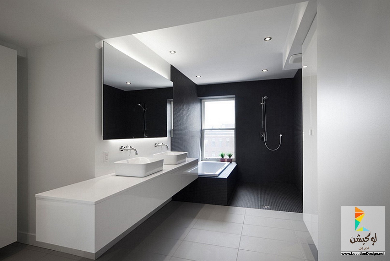 Ванная черный пол белые стены