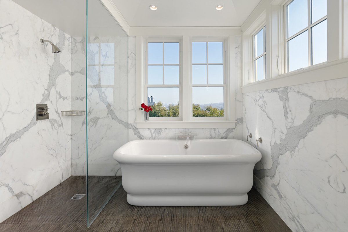 Стильная ванная комната с окном