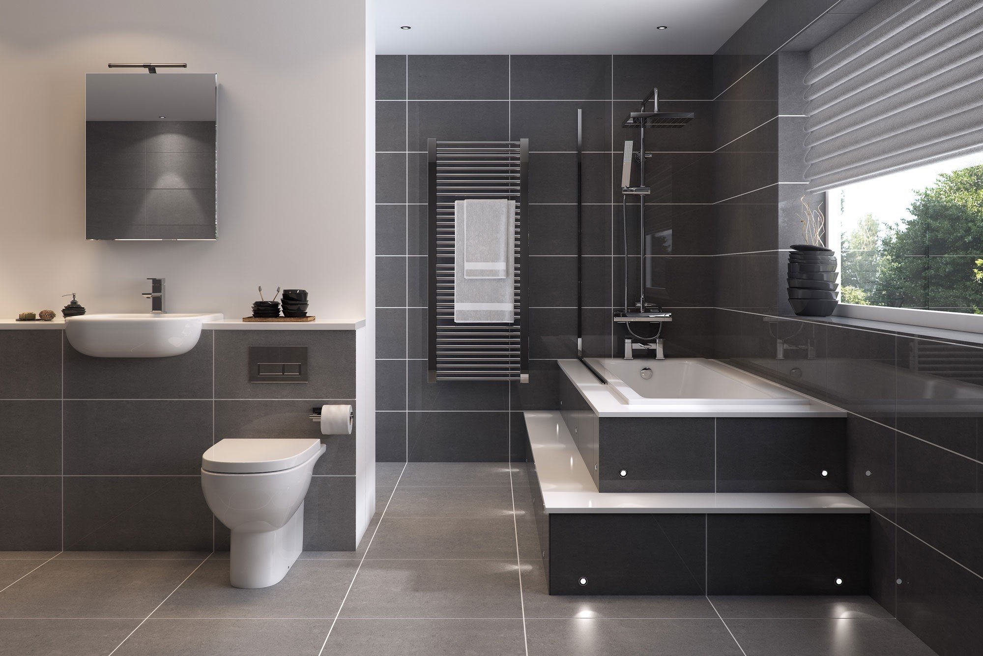 Серачерная ванная комната