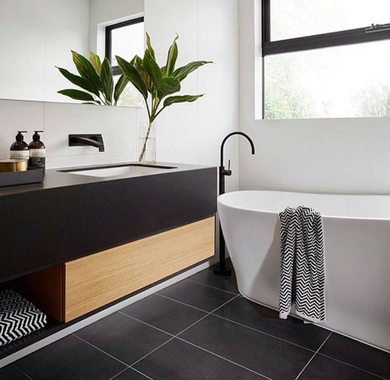 Ванная с черным полом