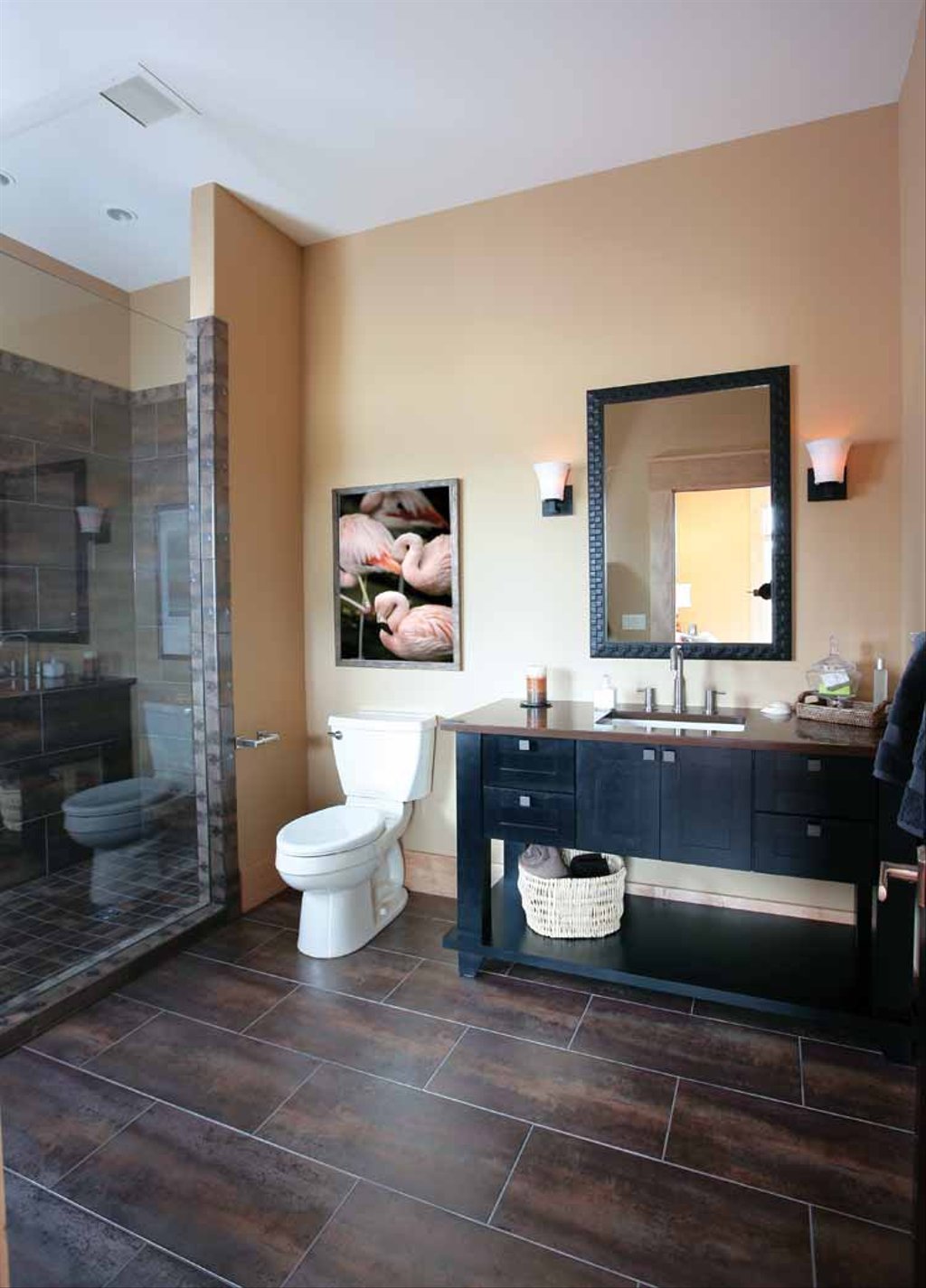 Ванная с коричневым полом