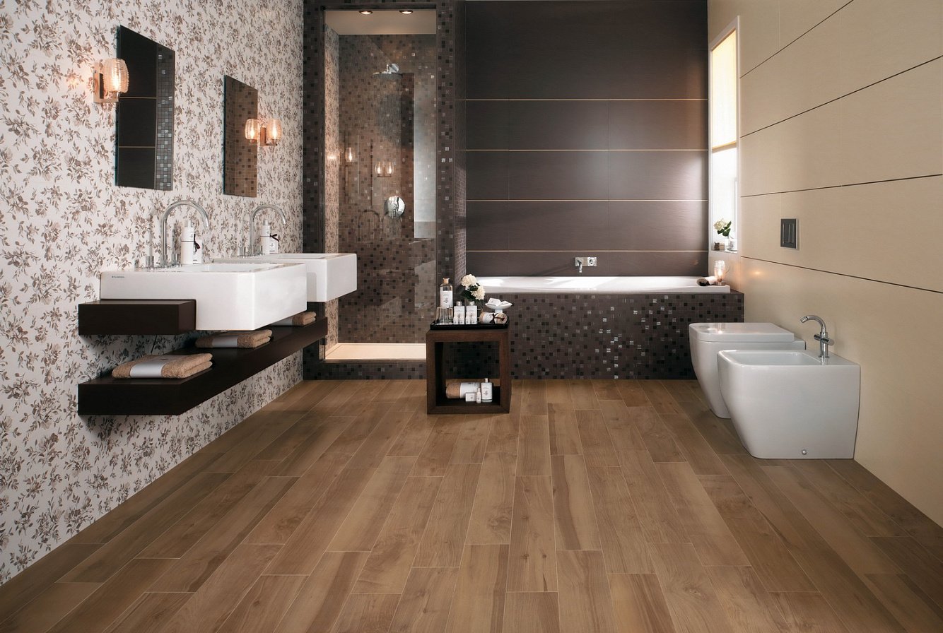 Ванная комната с деревянными полами
