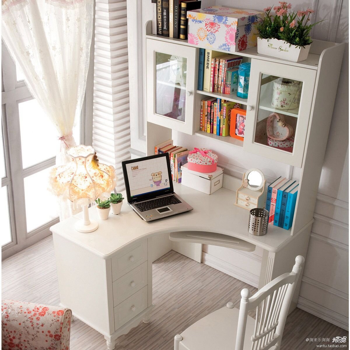Письменный стол у окна с полками