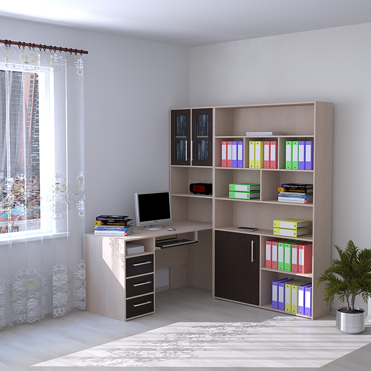 Рабочая зона у окна в кабинете