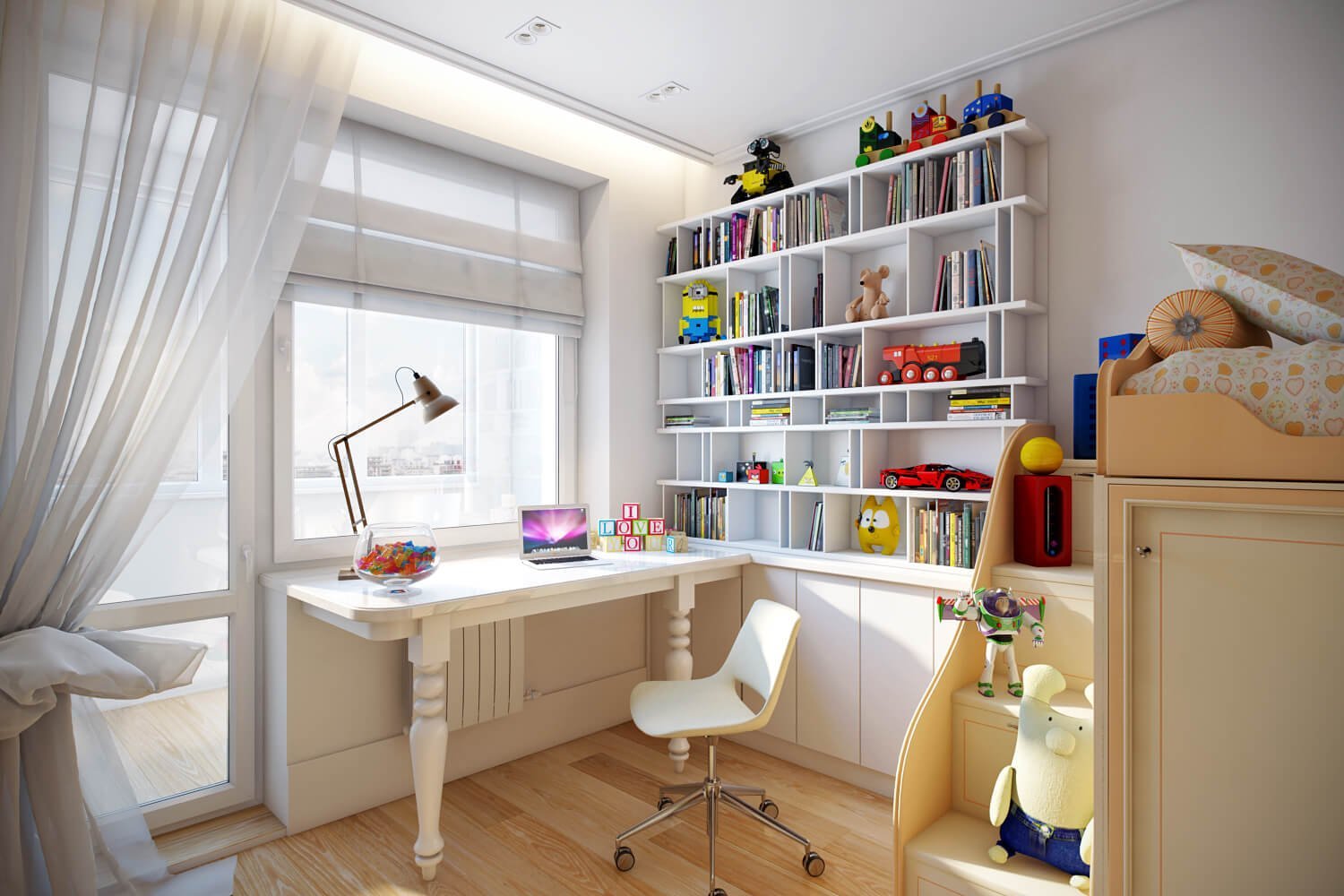 Письменный стол у окна в детской