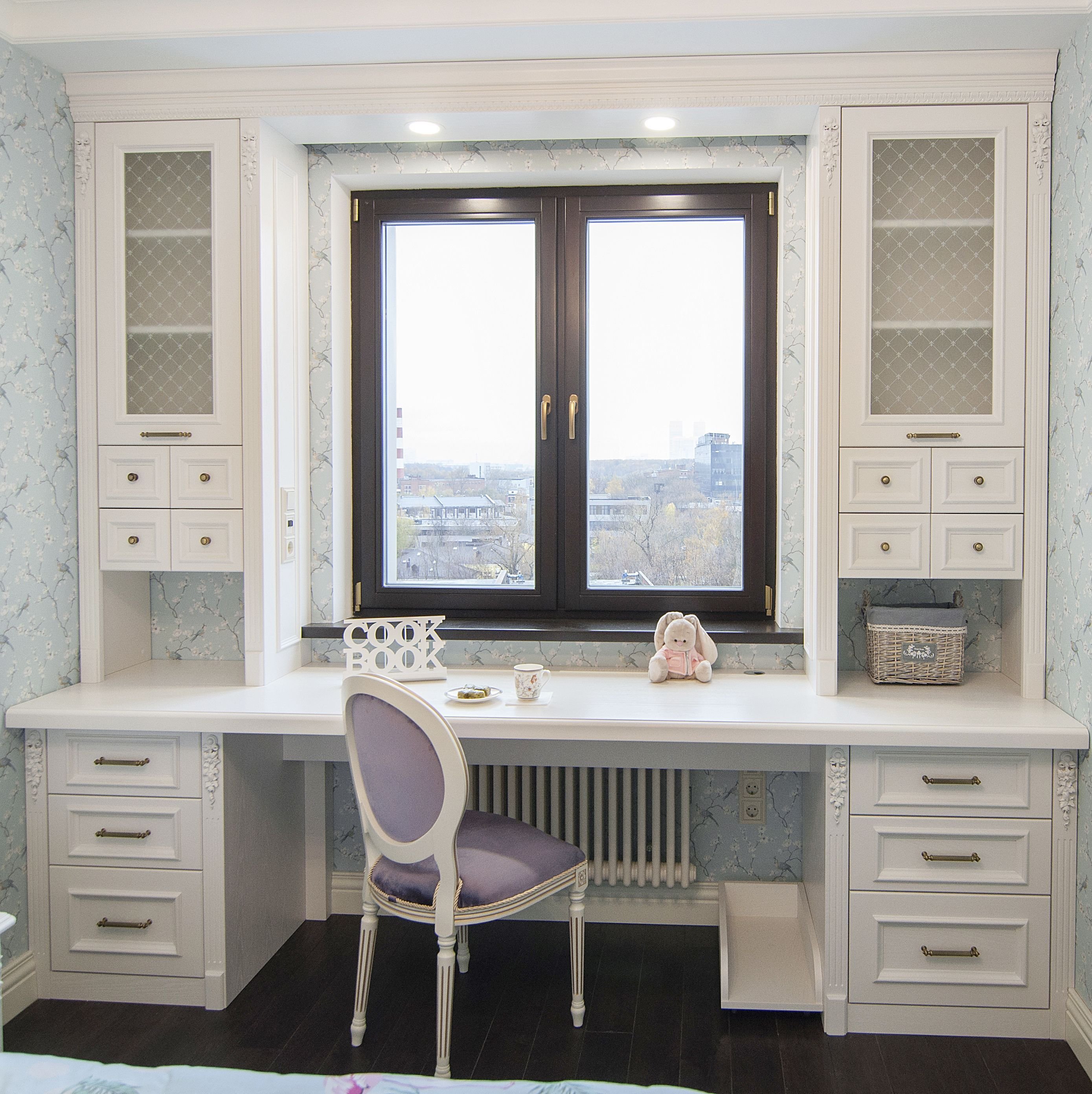 Письменный стол у окна со шкафами