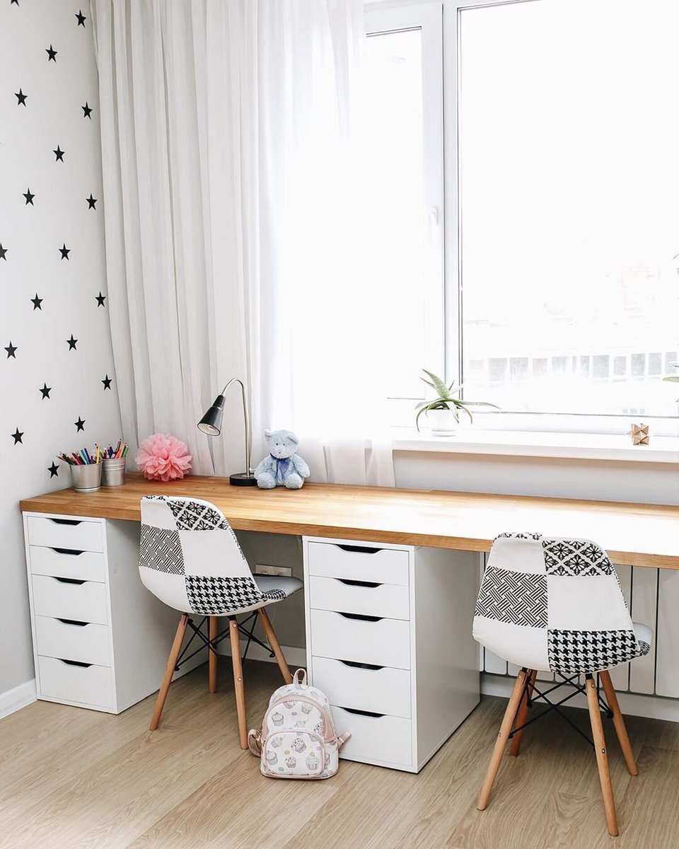 Письменный стол у окна в детской для двоих икеа