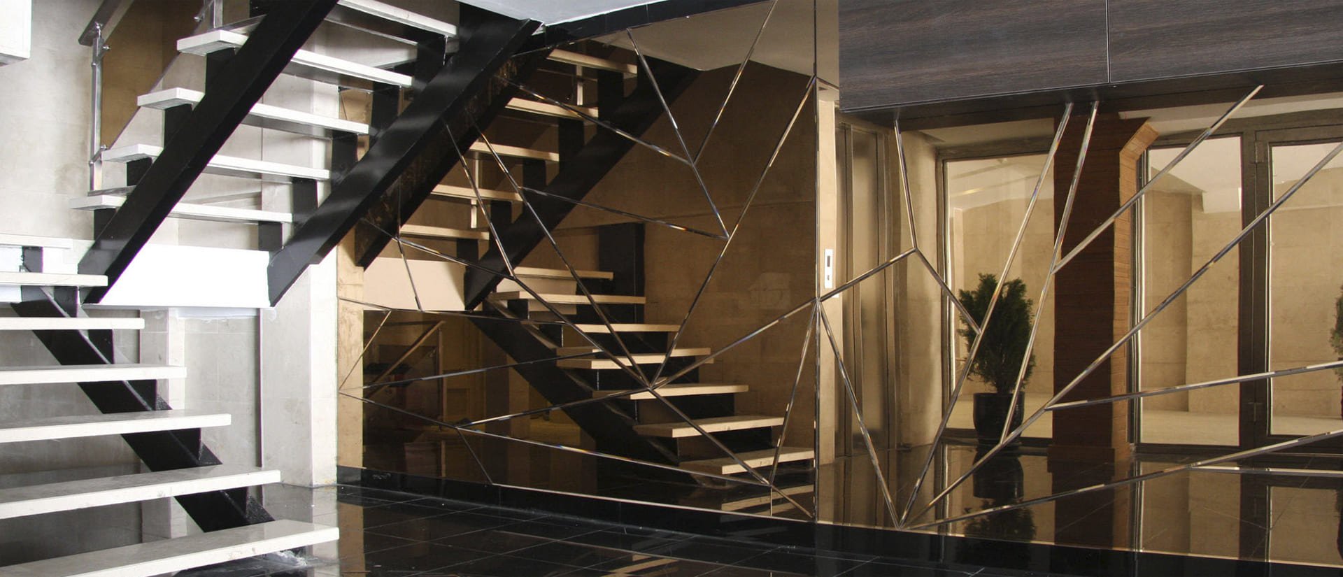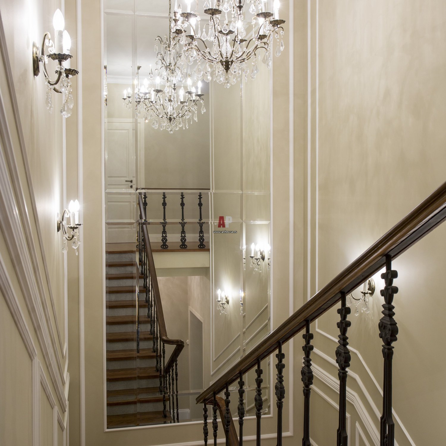 Зеркальная стена на лестнице