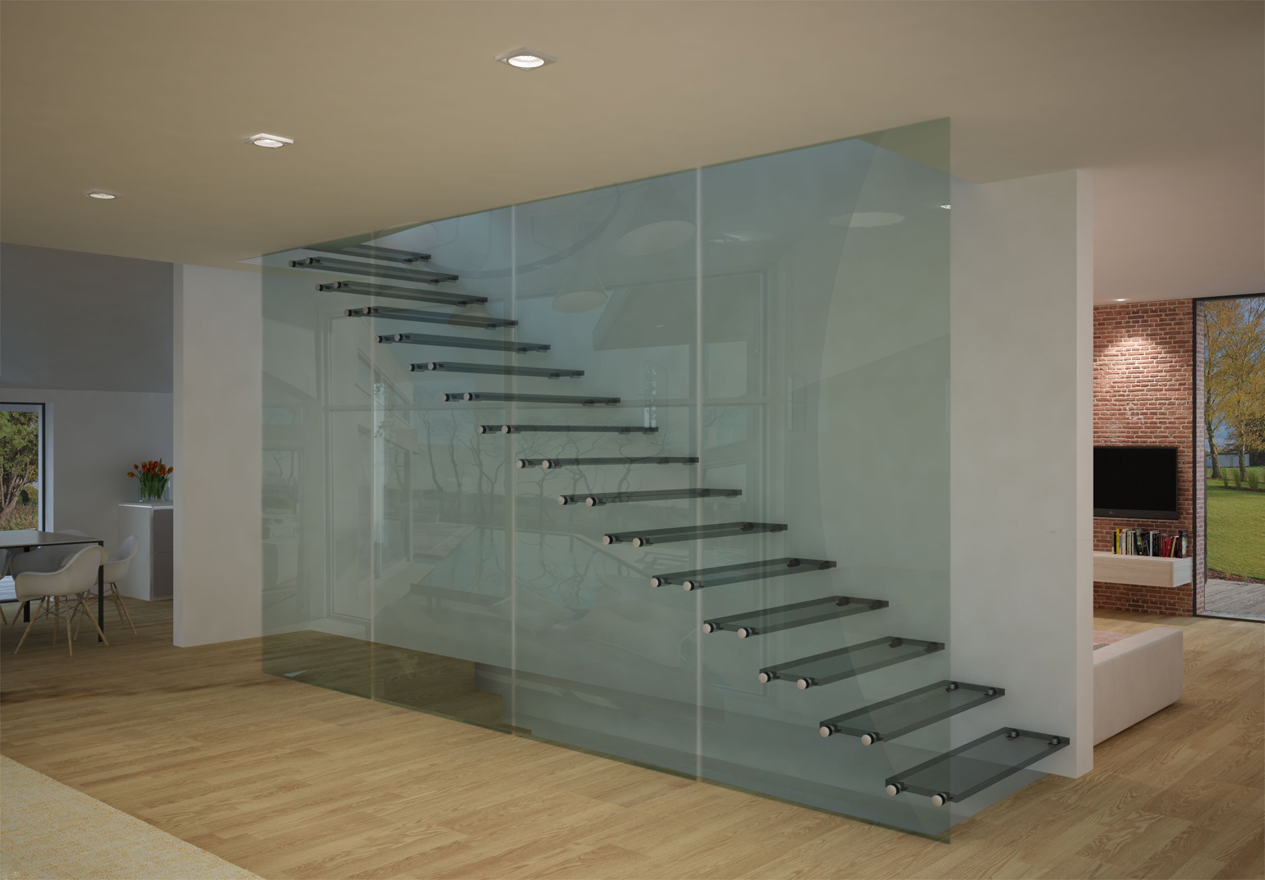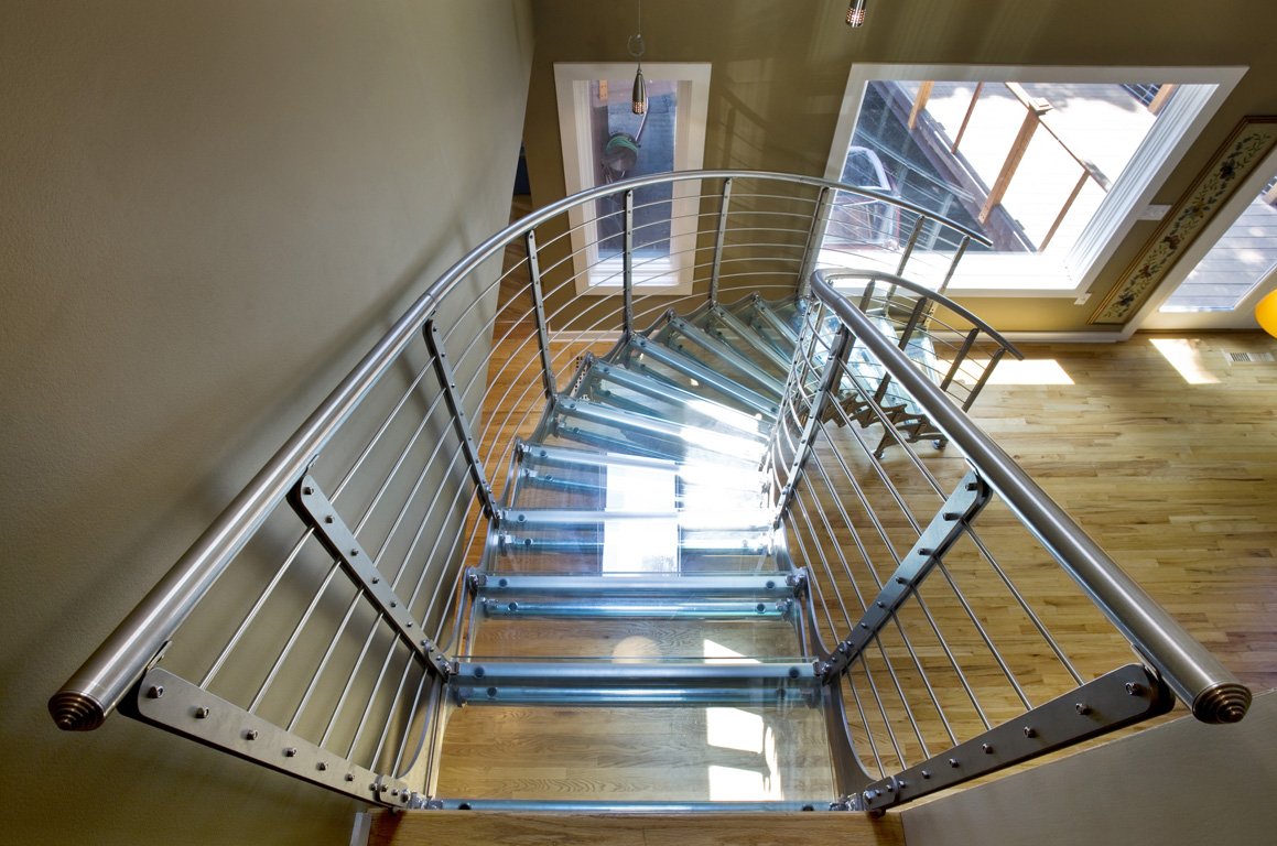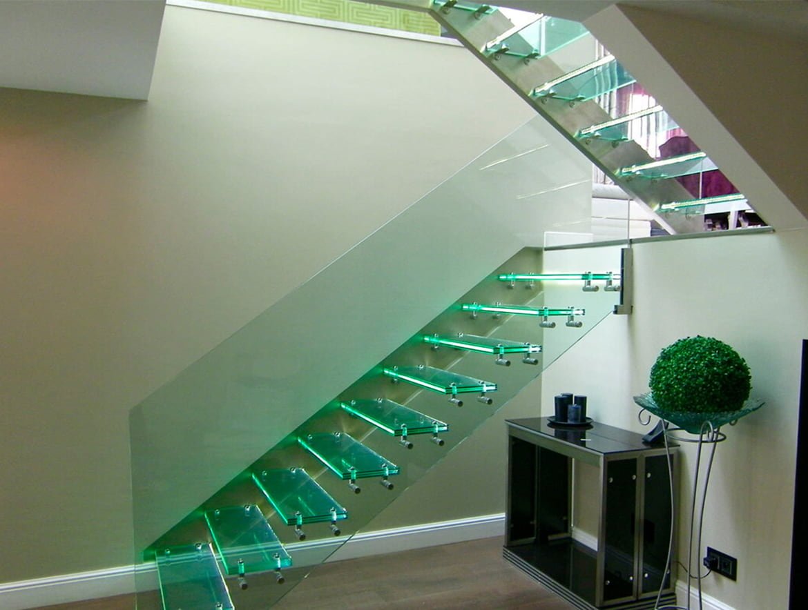 Стеклянная лестница в доме
