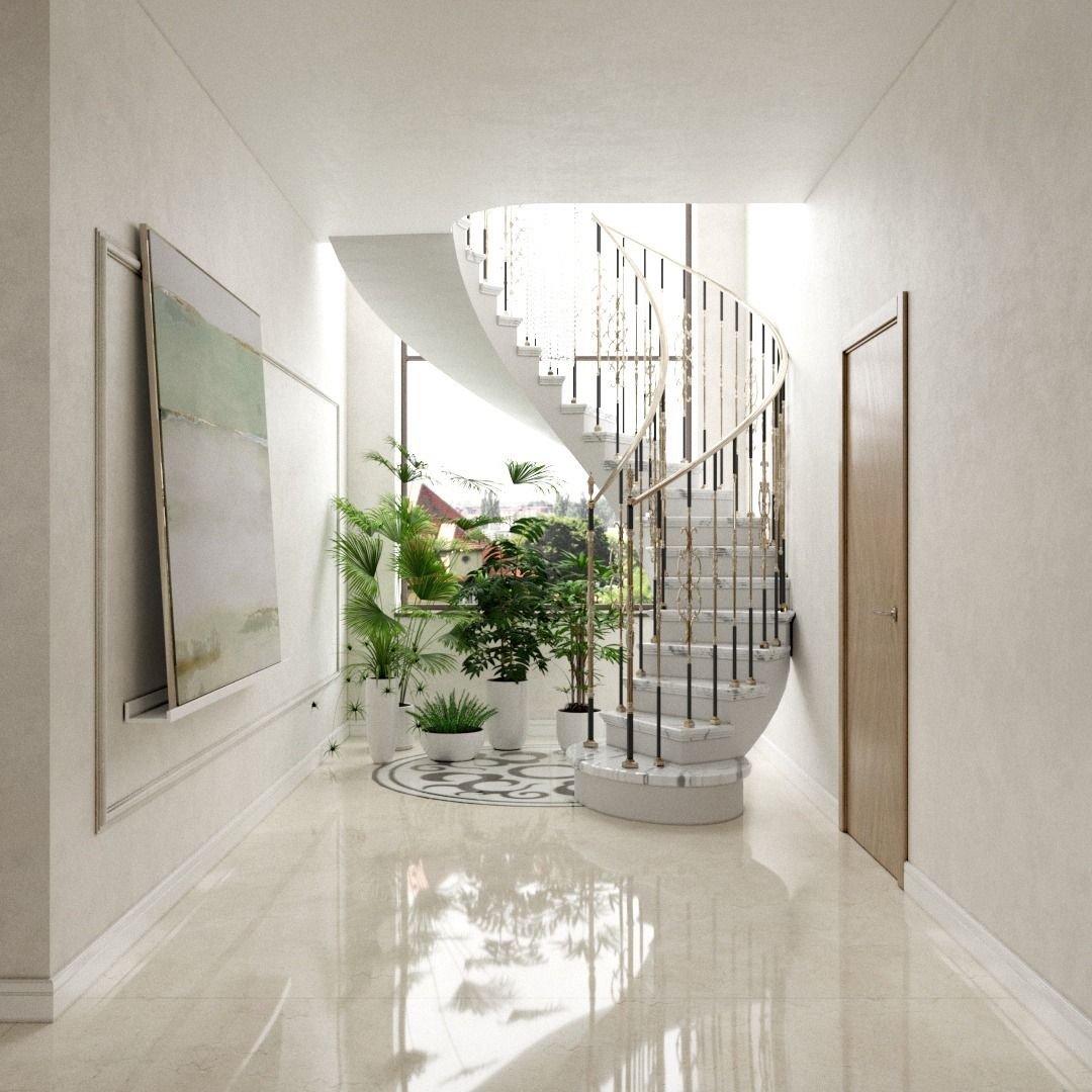 Интерьер холла с лестницей