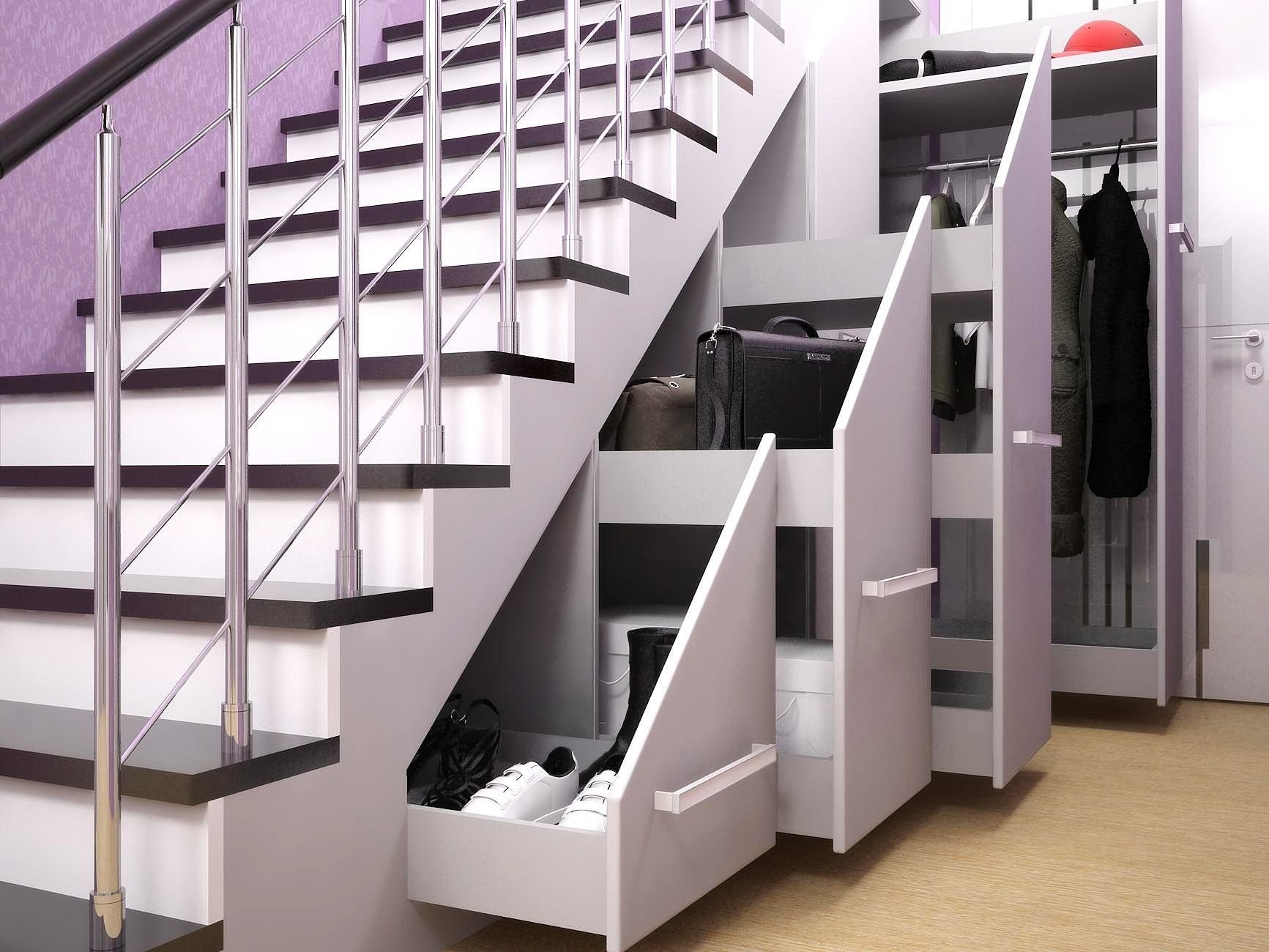 Выдвижные шкафы под лестницей