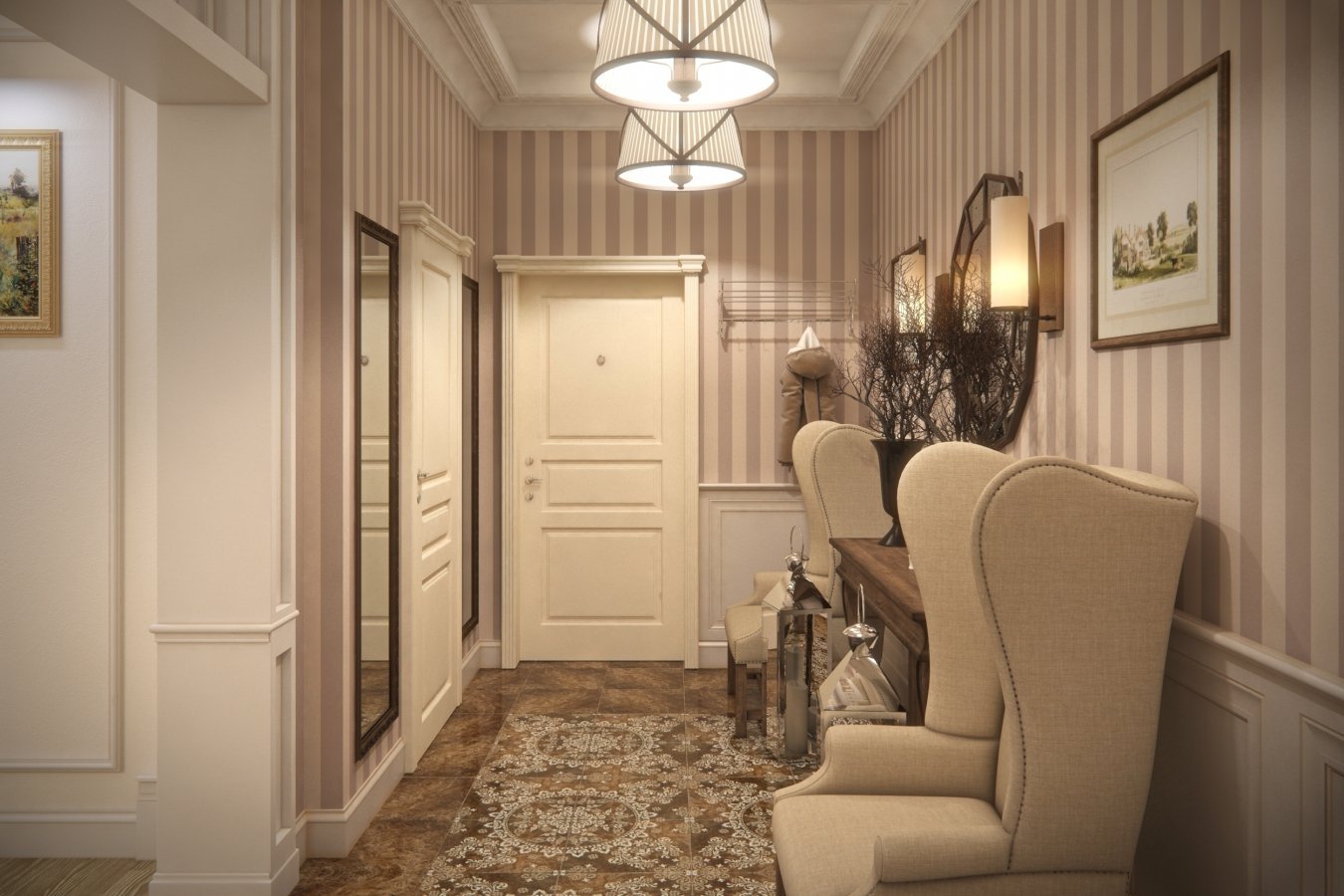 Узкий коридор в классическом стиле