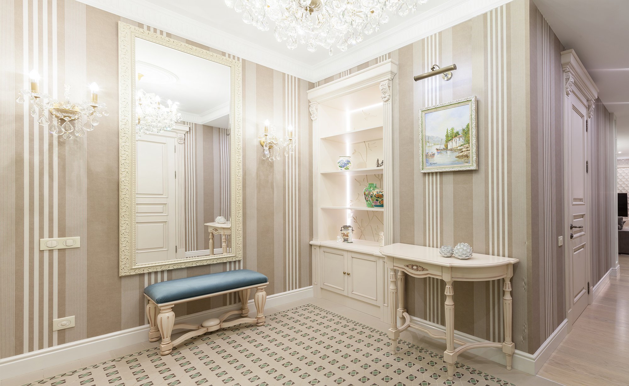 Прихожая в классическом стиле в светлых тонах