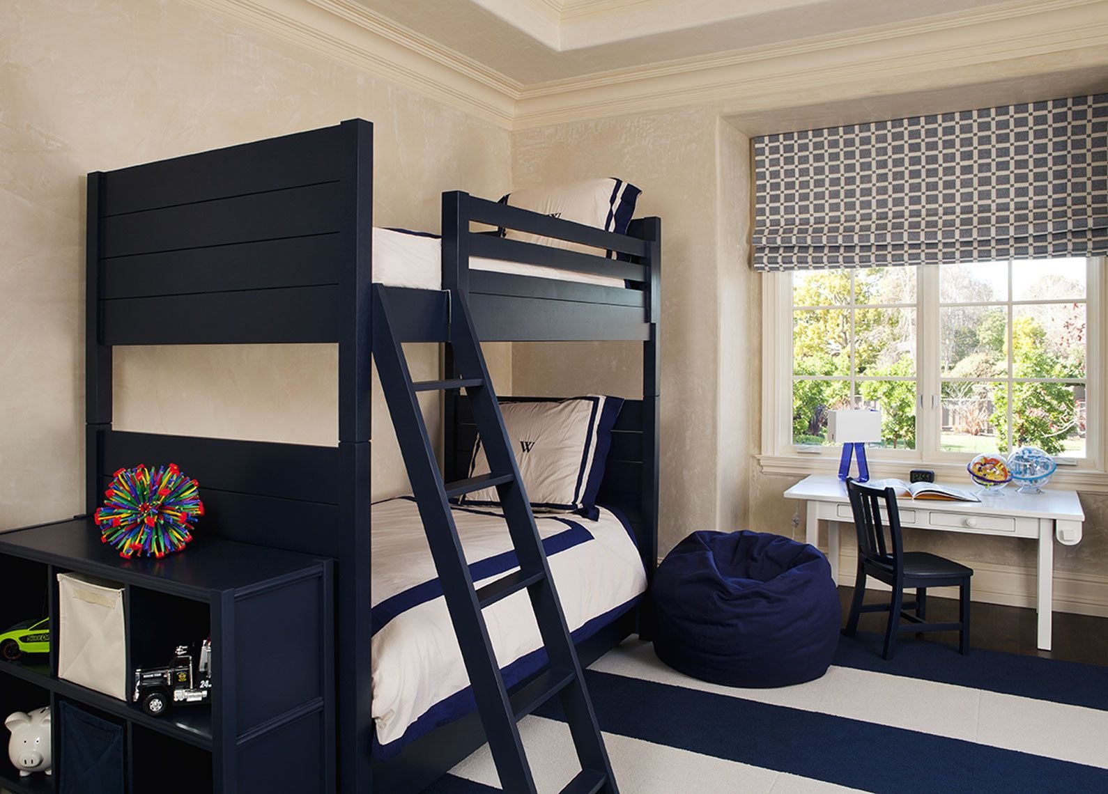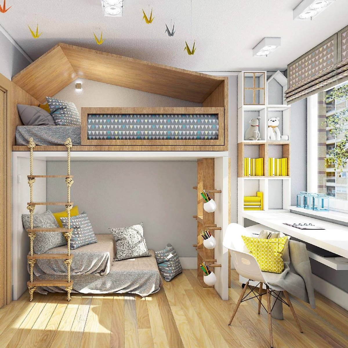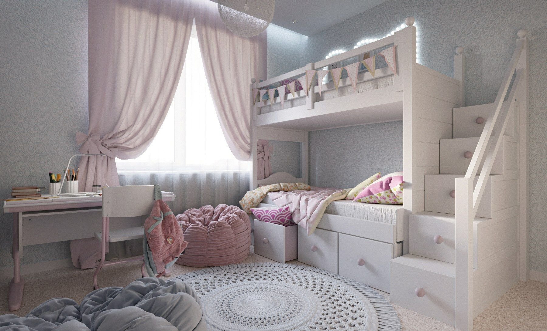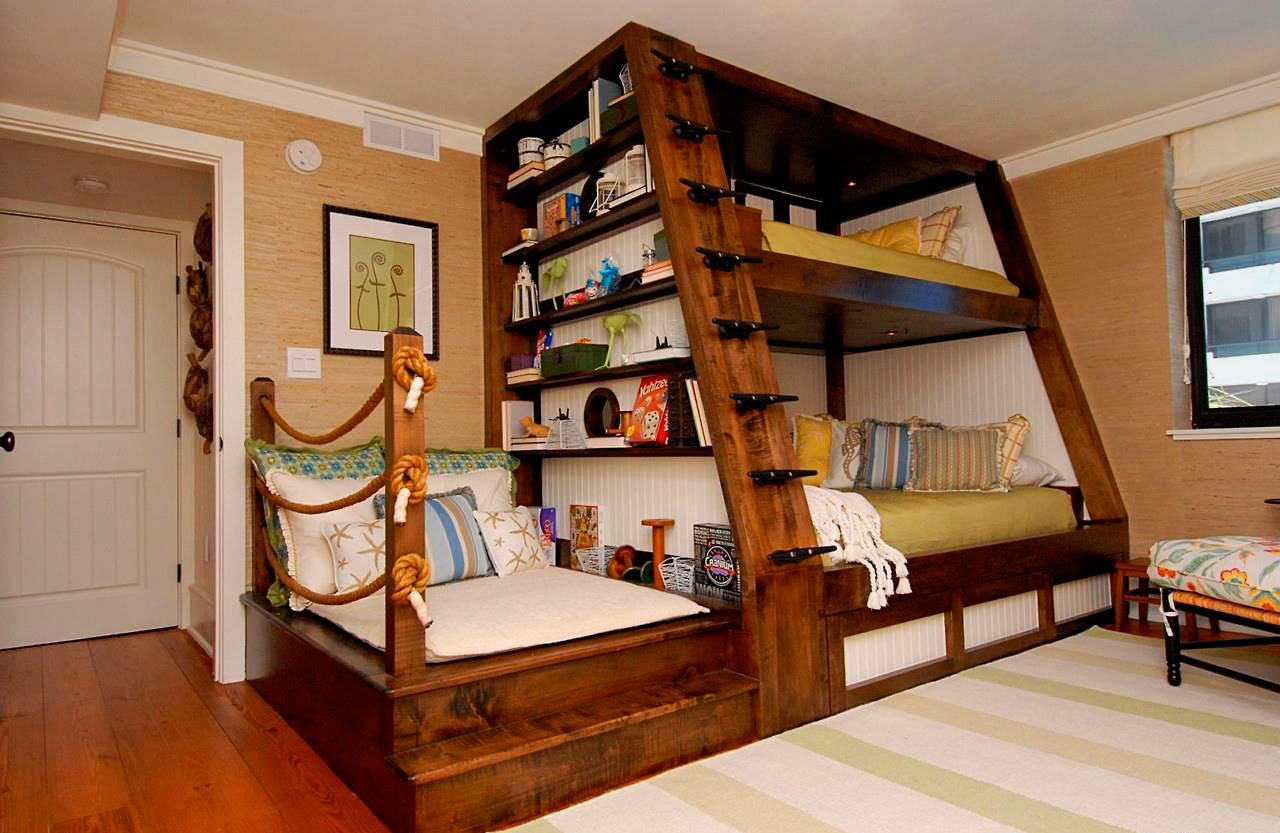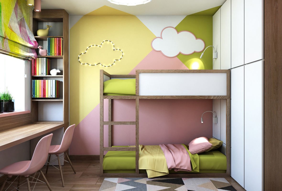Интерьер детской для двоих разнополых с двухъярусной кроватью
