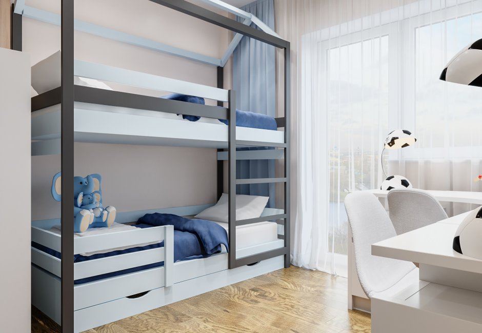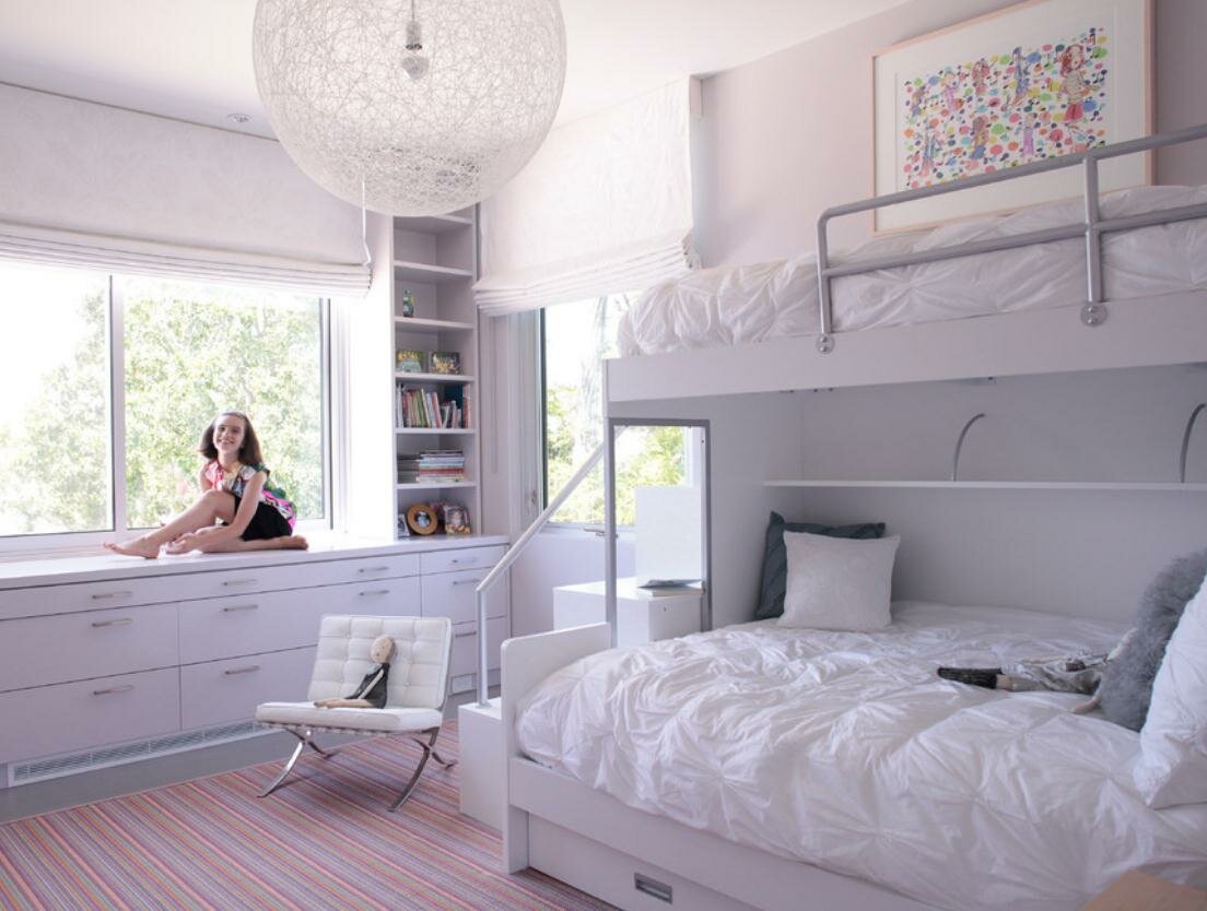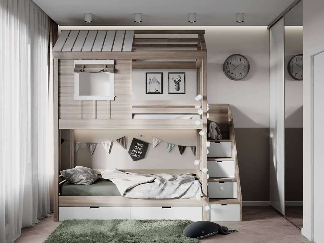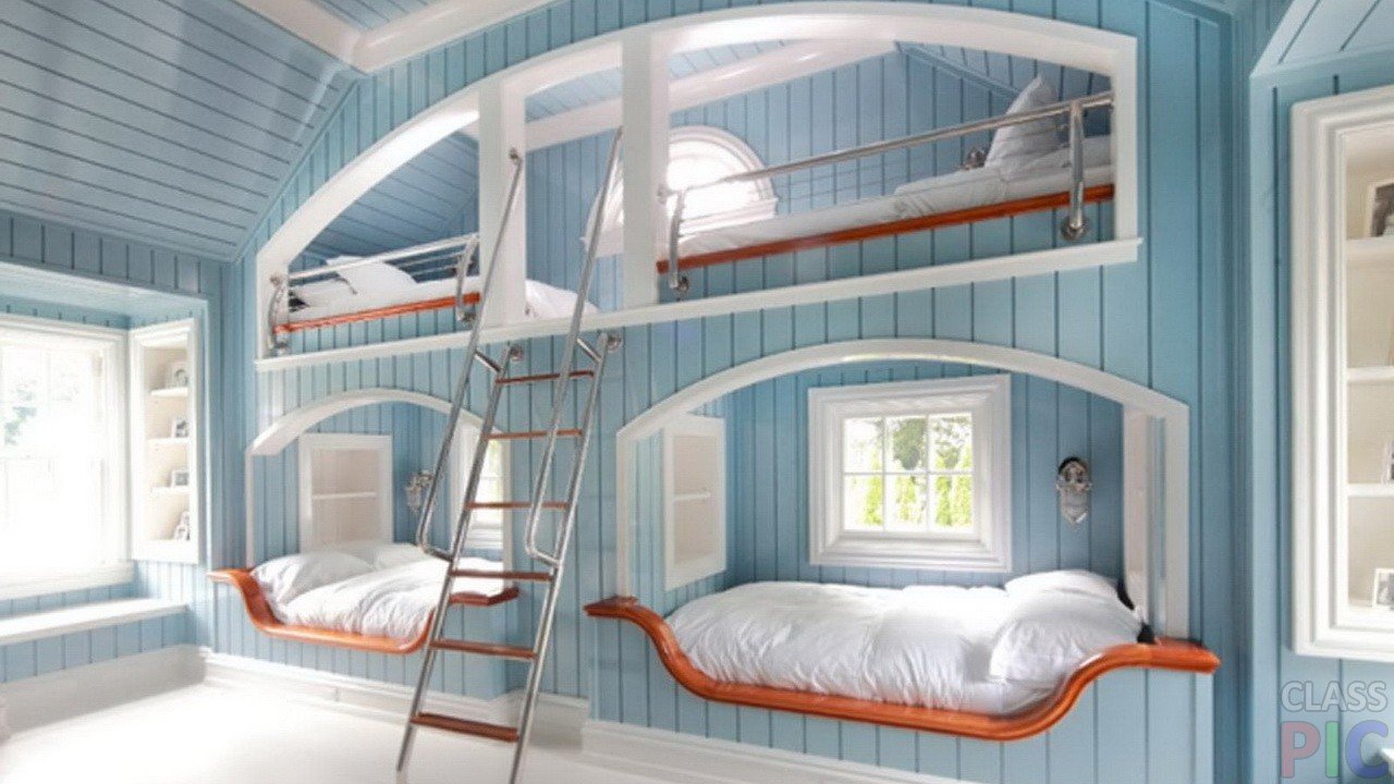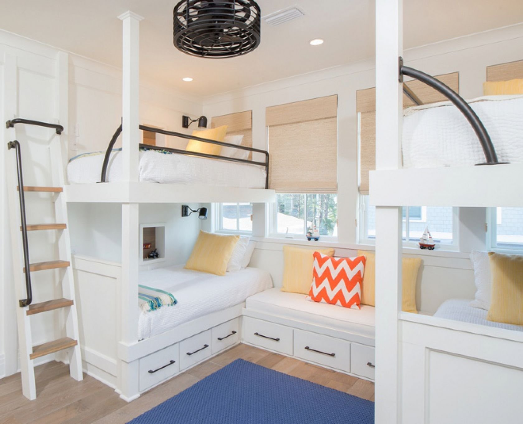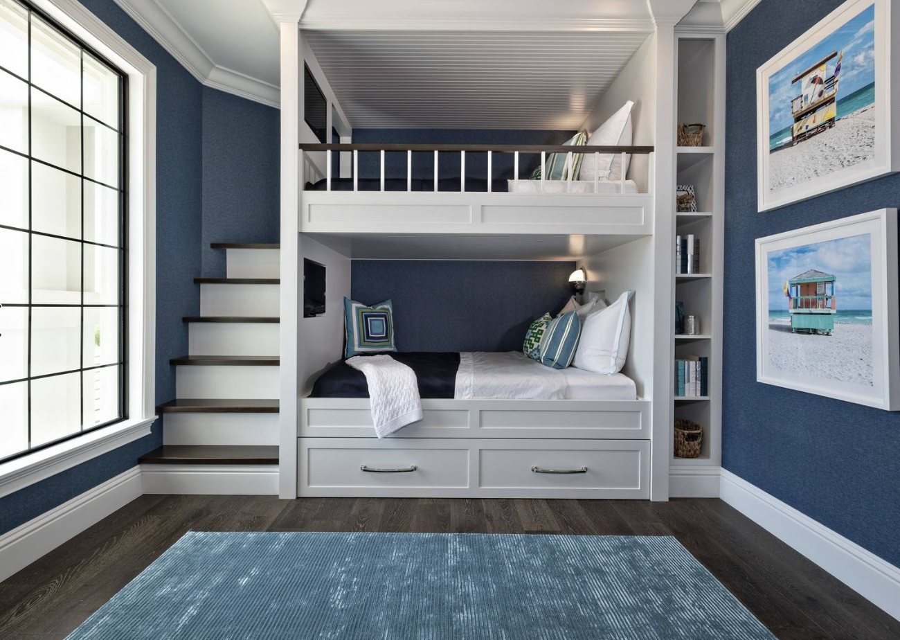 Интерьер детской для двоих разнополых с двухъярусной кроватью