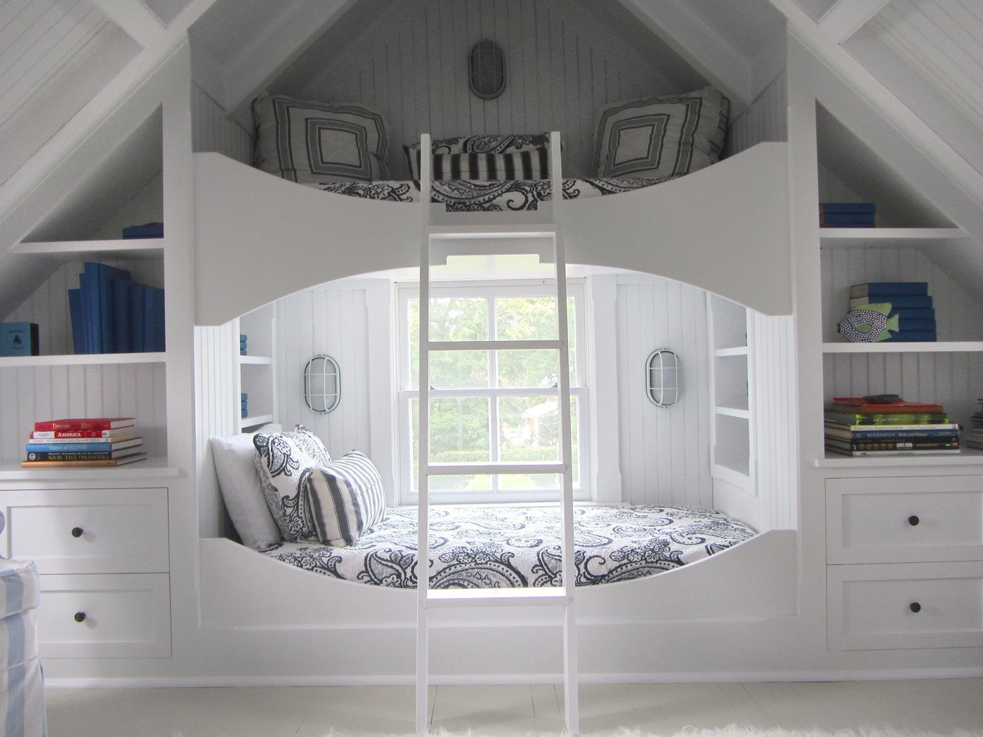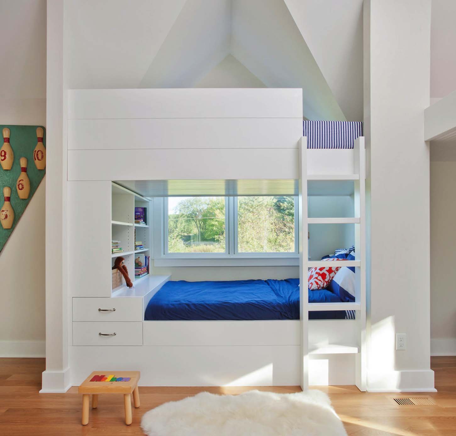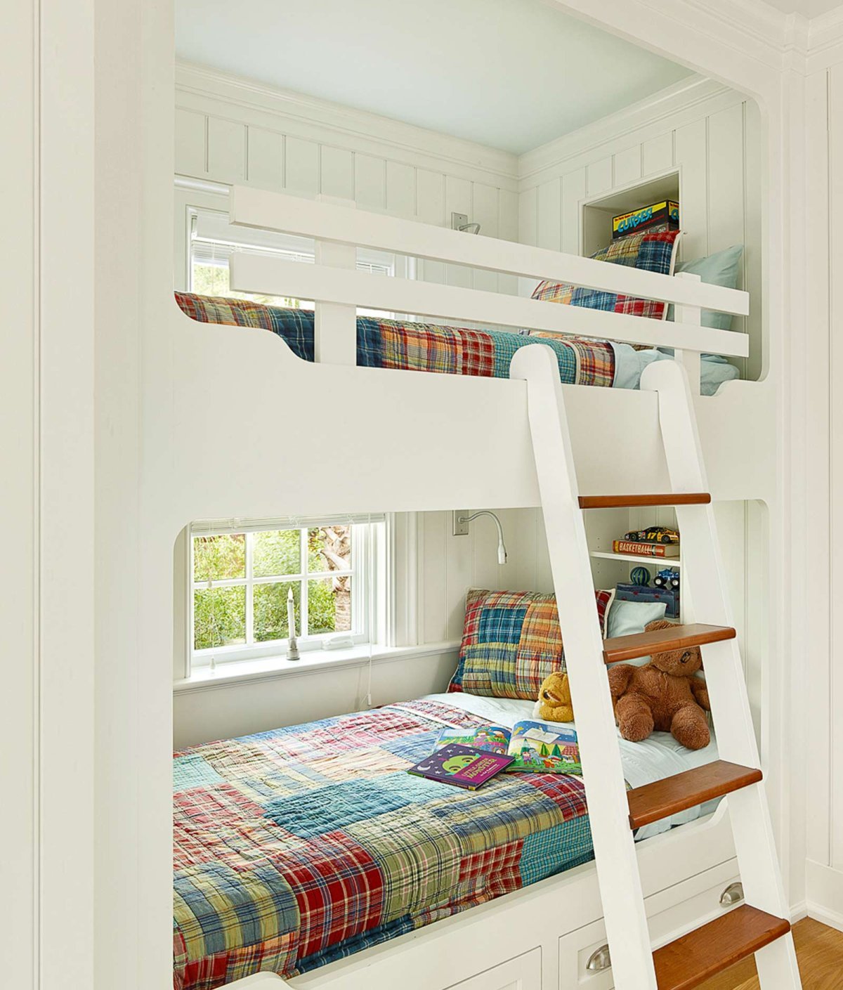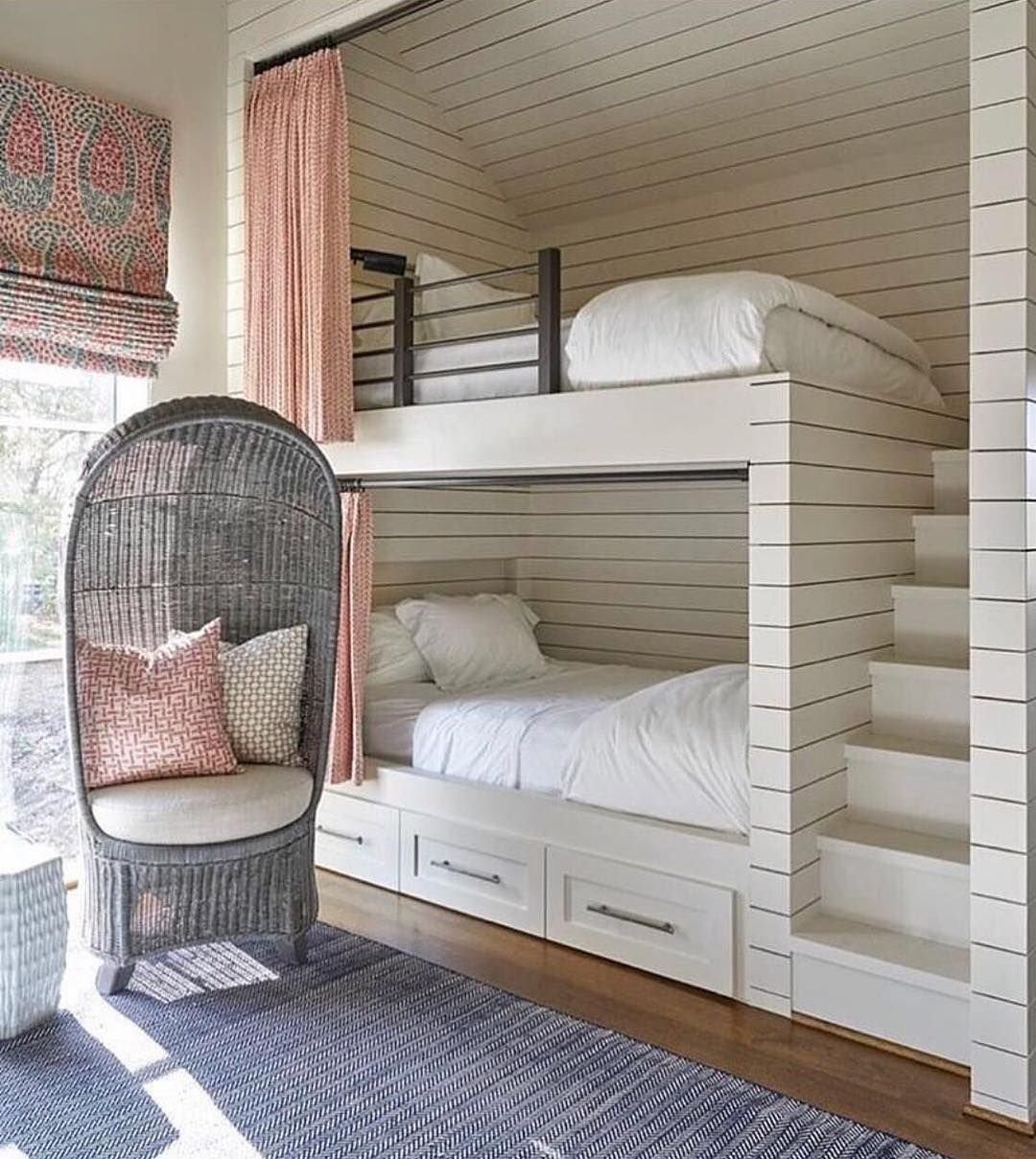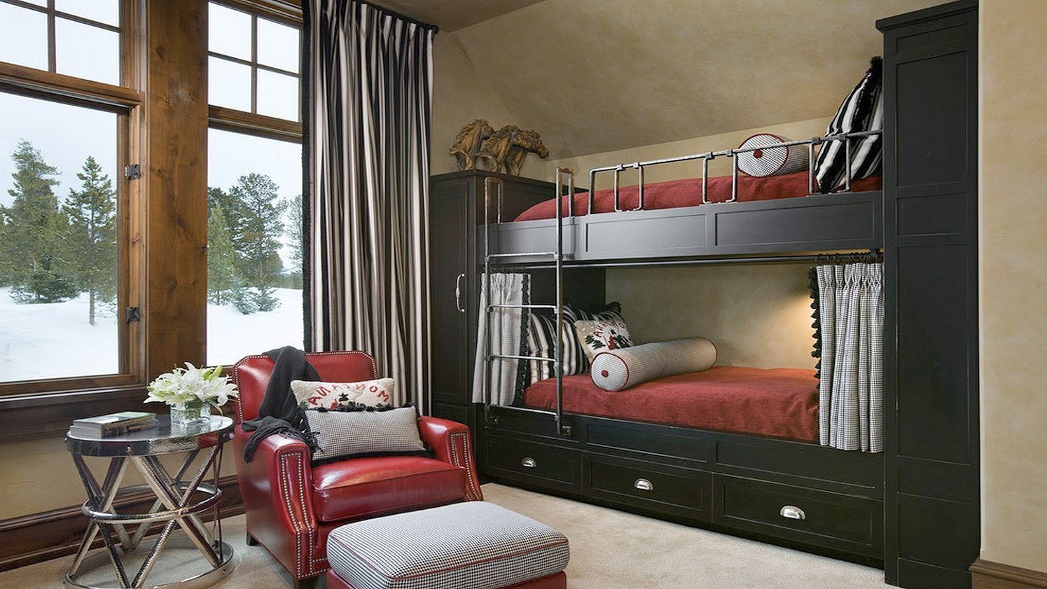 Интерьер детской для двоих разнополых с двухъярусной кроватью