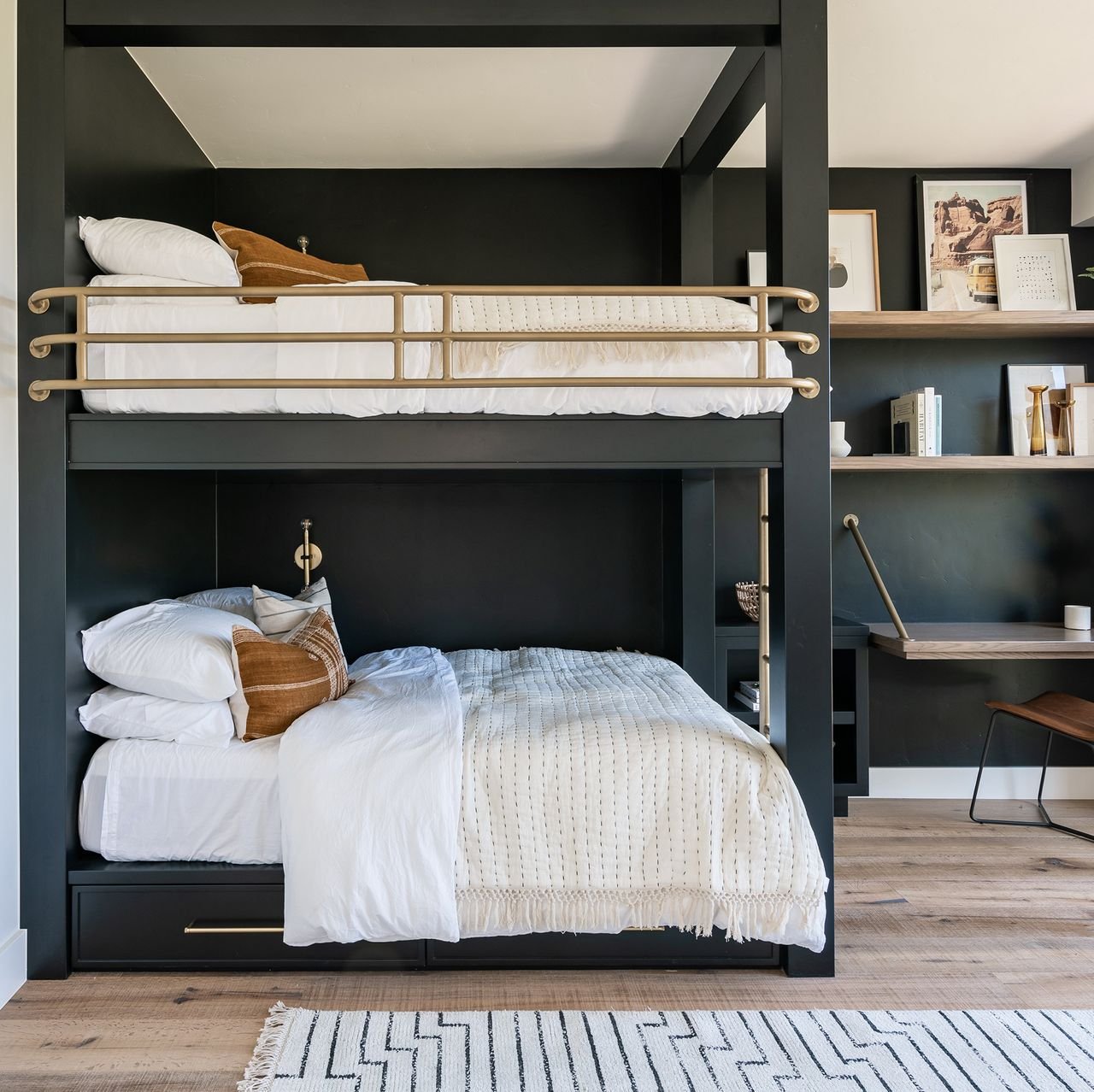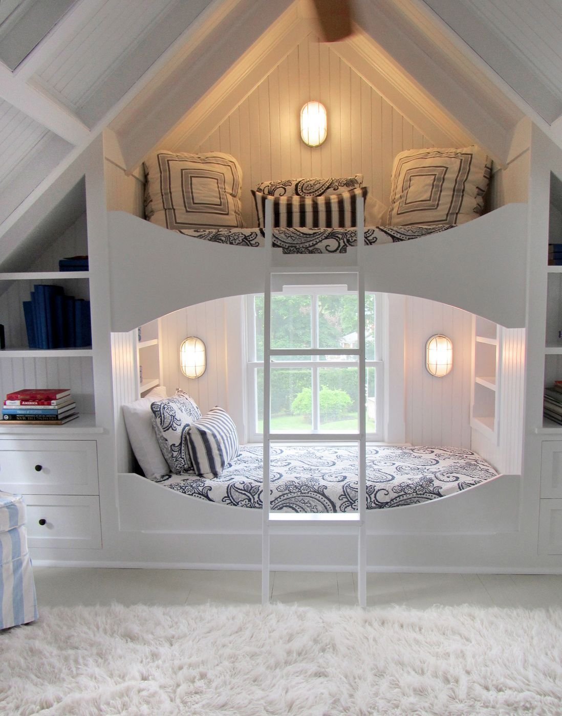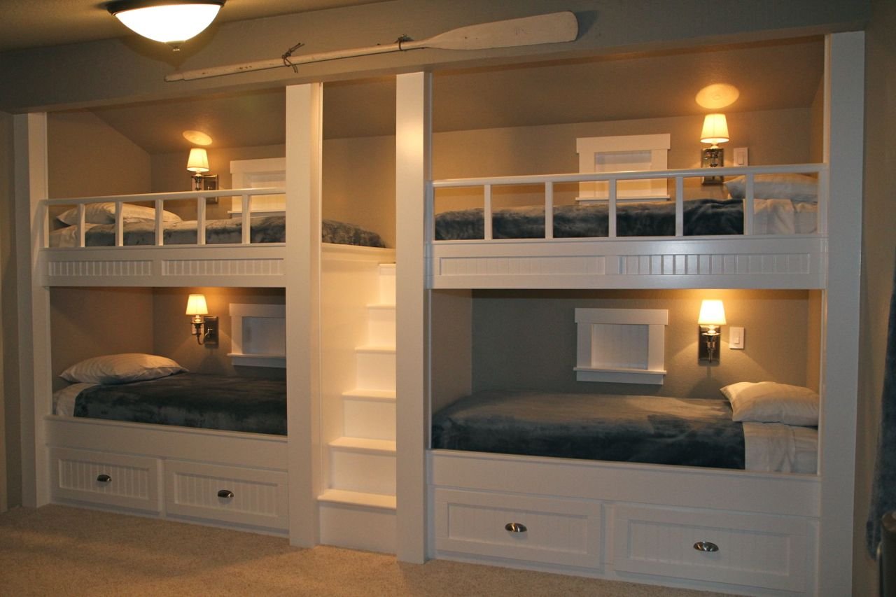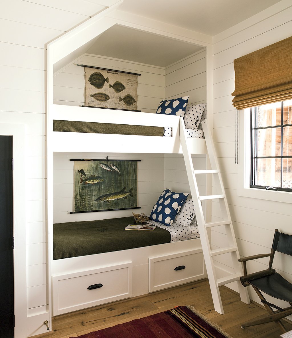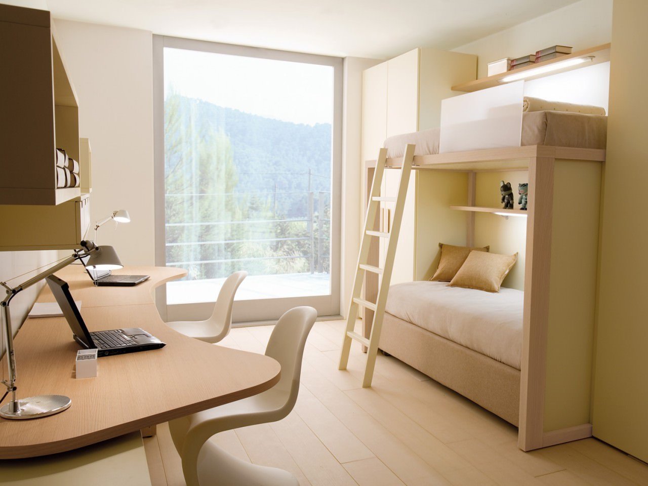 Интерьер детской для двоих разнополых с двухъярусной кроватью