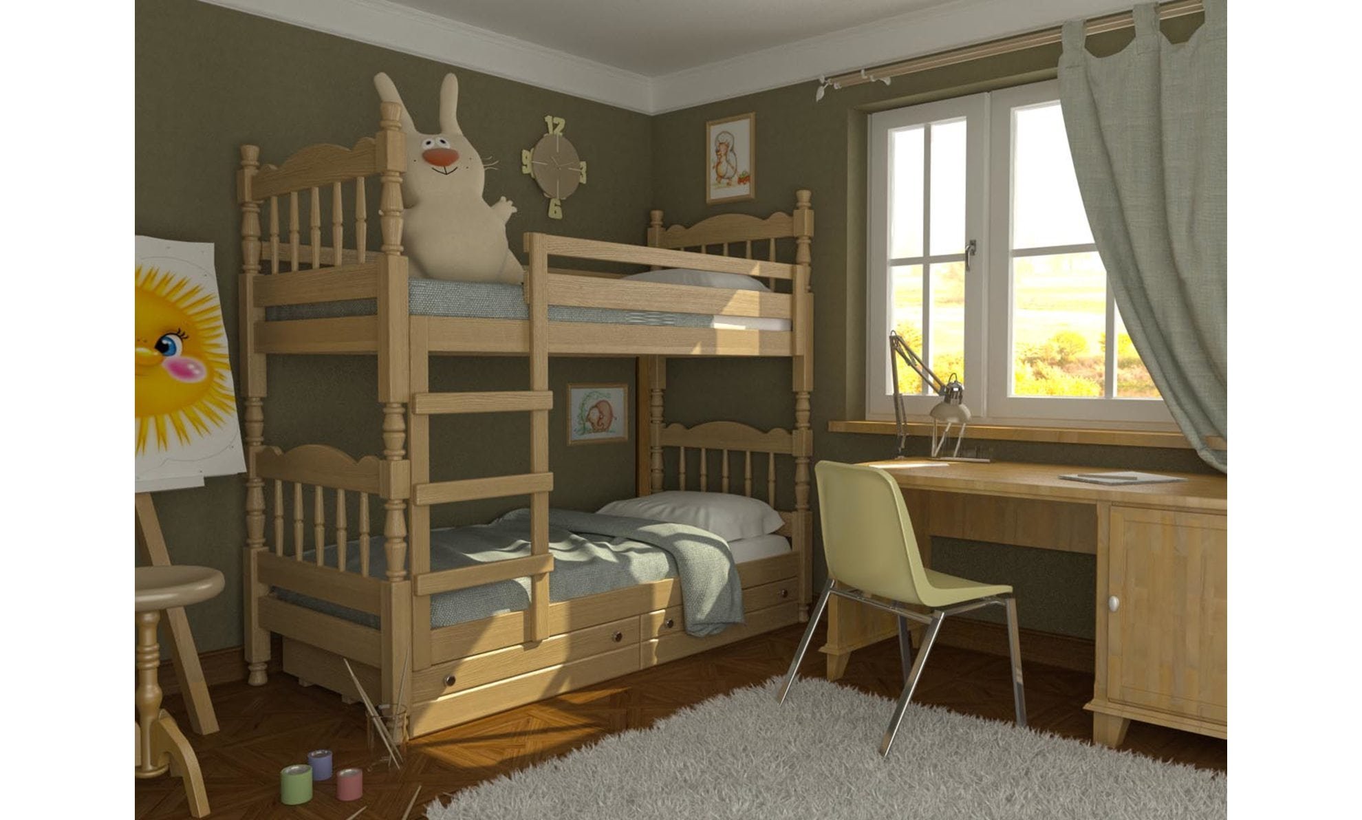 Детская для двоих разнополых с двухъярусной кроватью 20 кв.м
