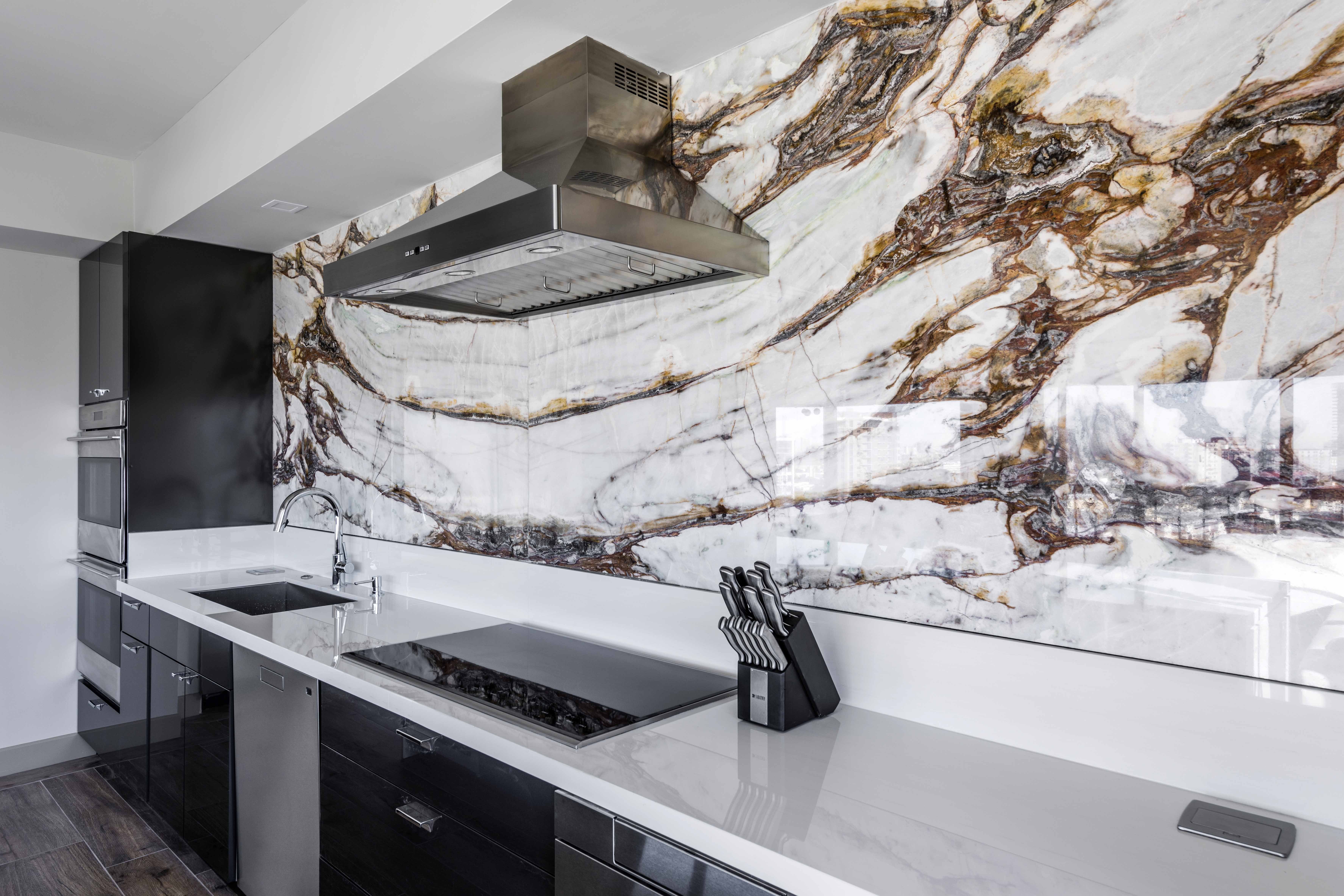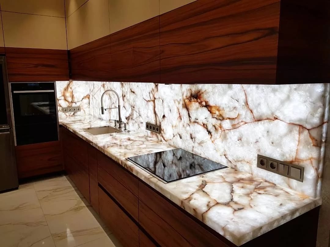 Мрамор в интерьере кухни