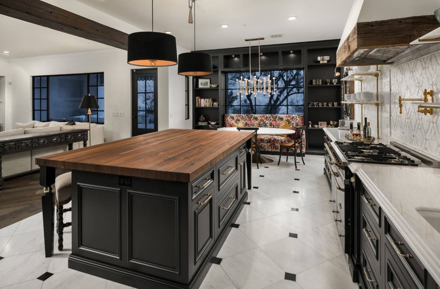 Черно Золотая кухня в интерьере