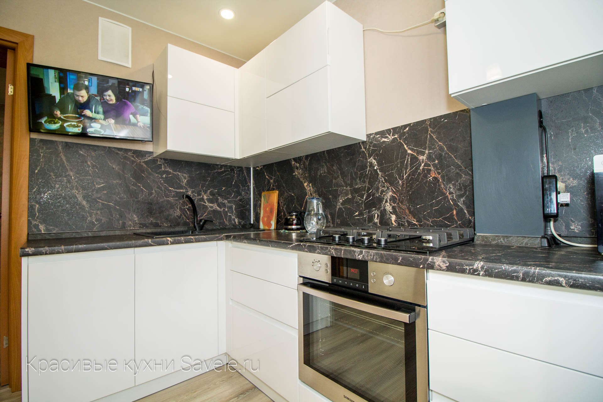 Кухня с мраморным фартуком