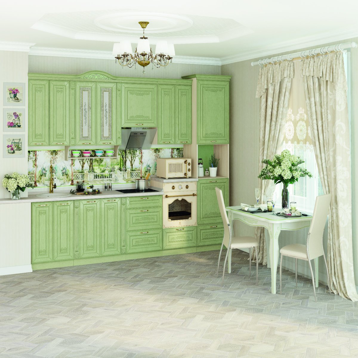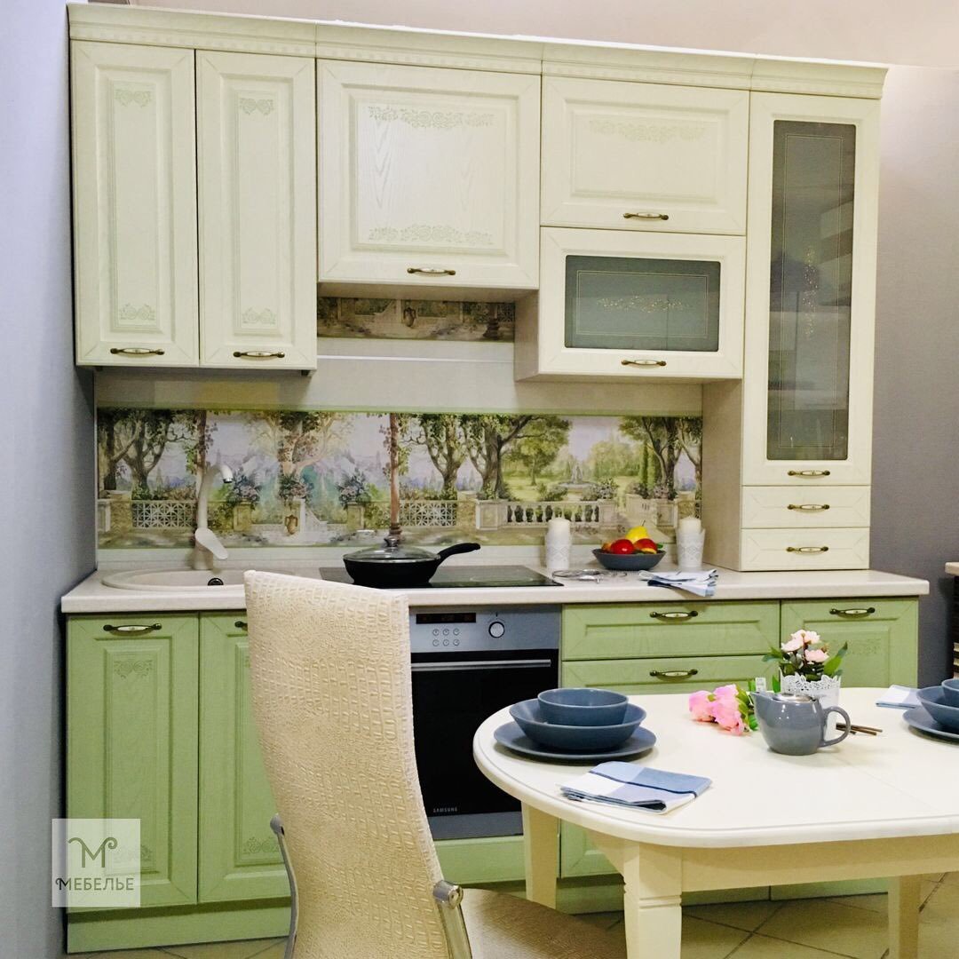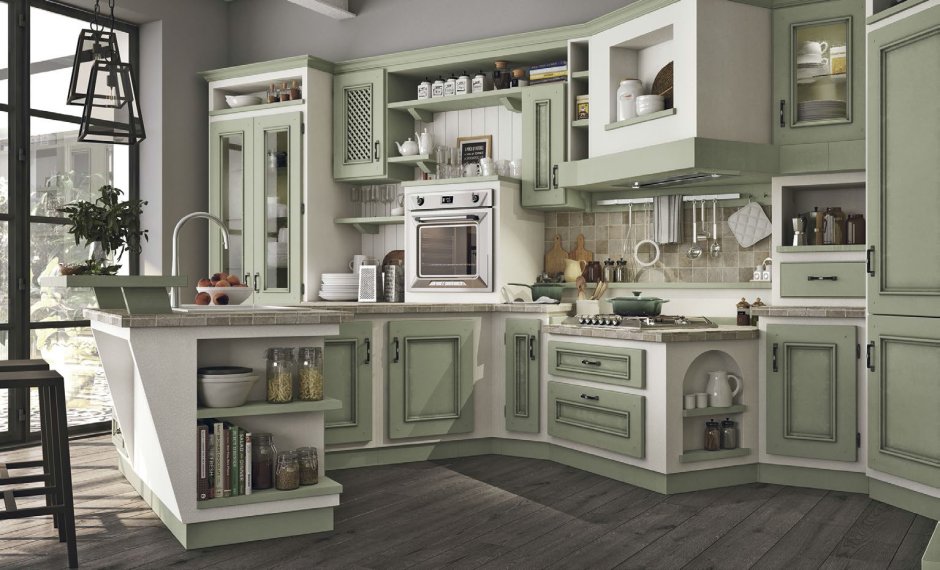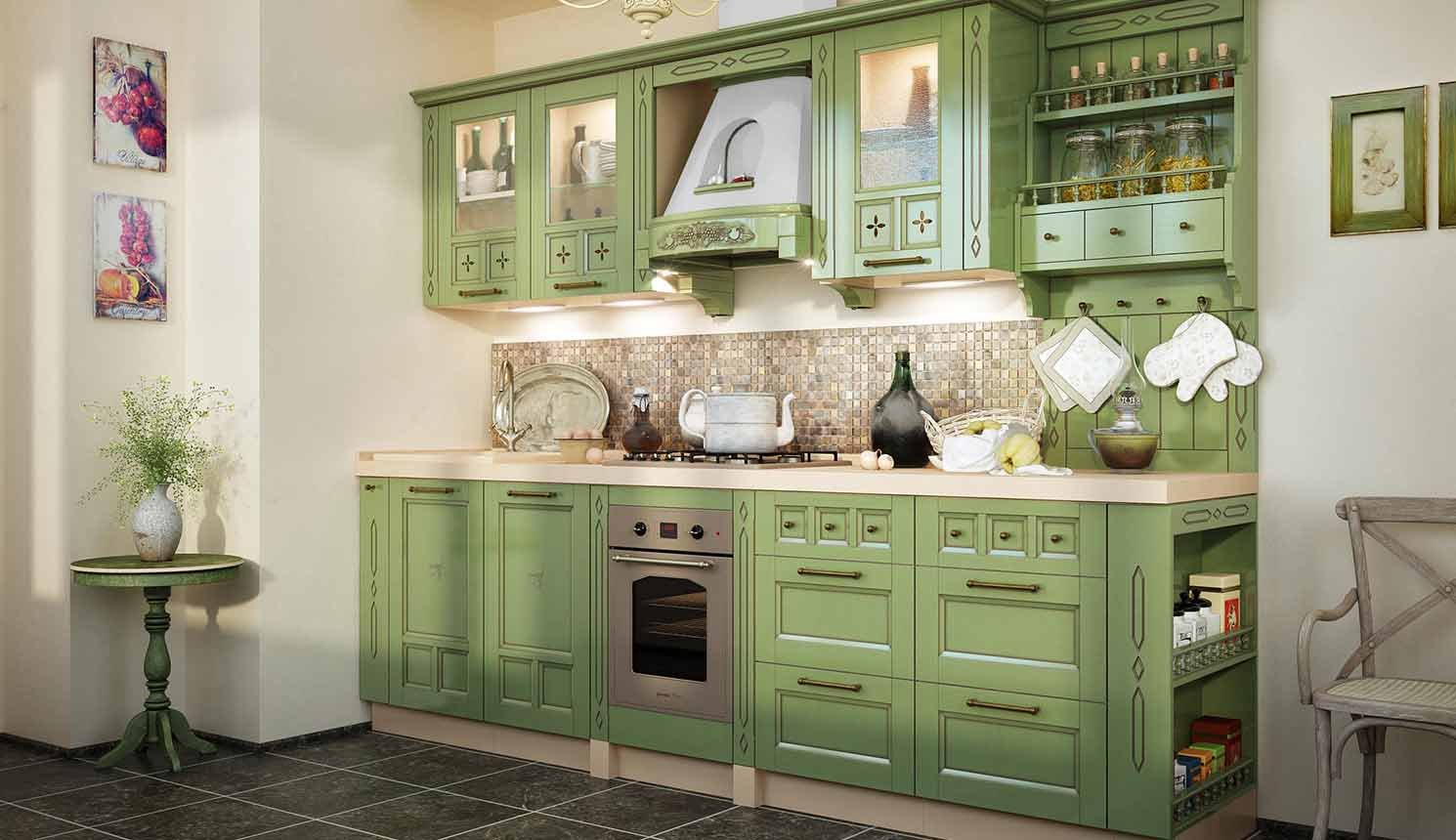 Кухня в стиле Прованс фисташкового цвета