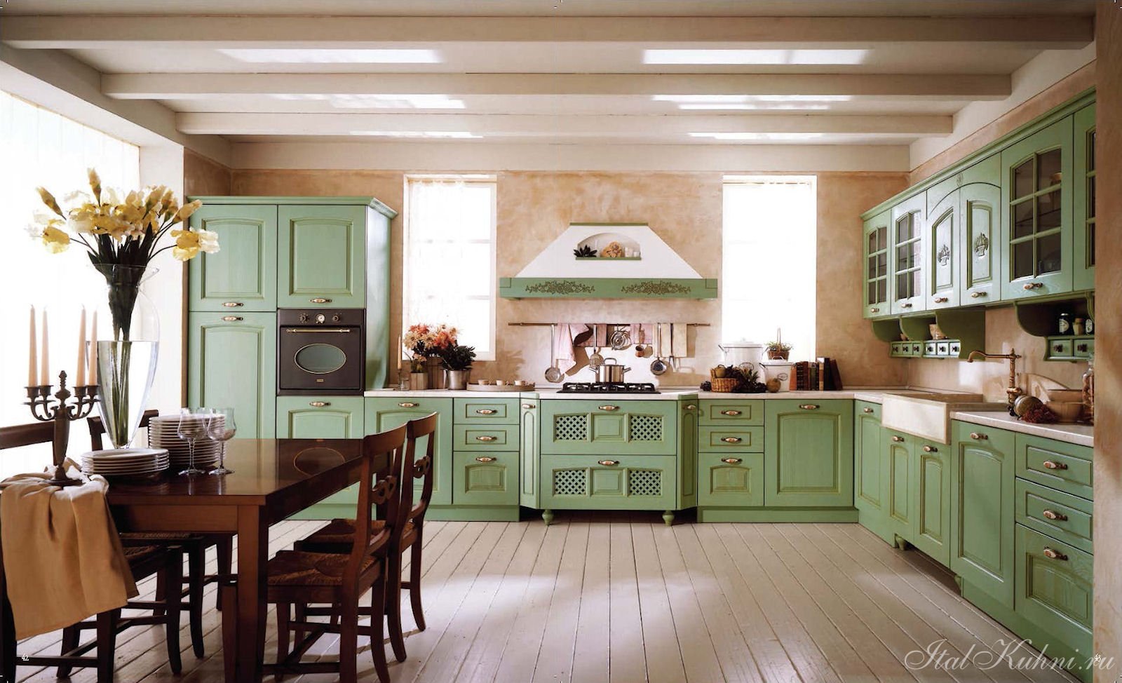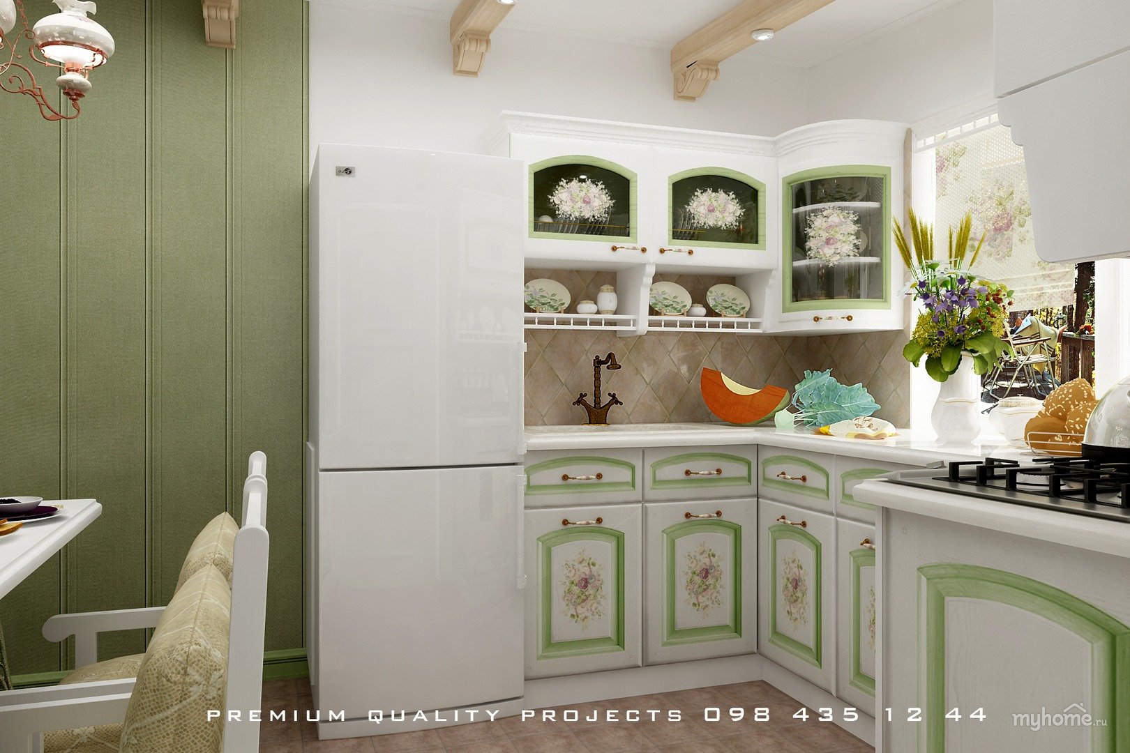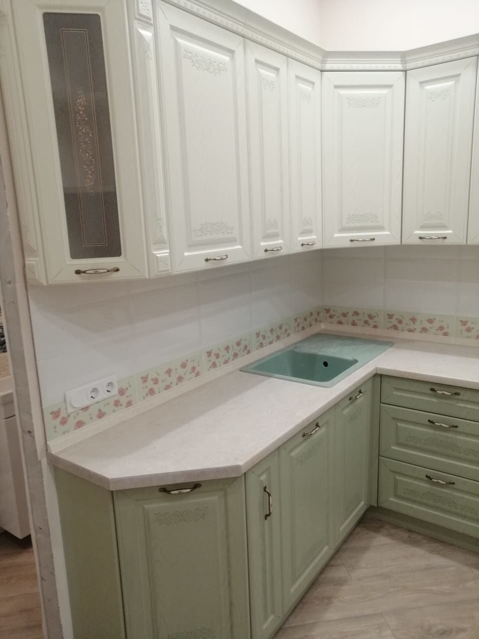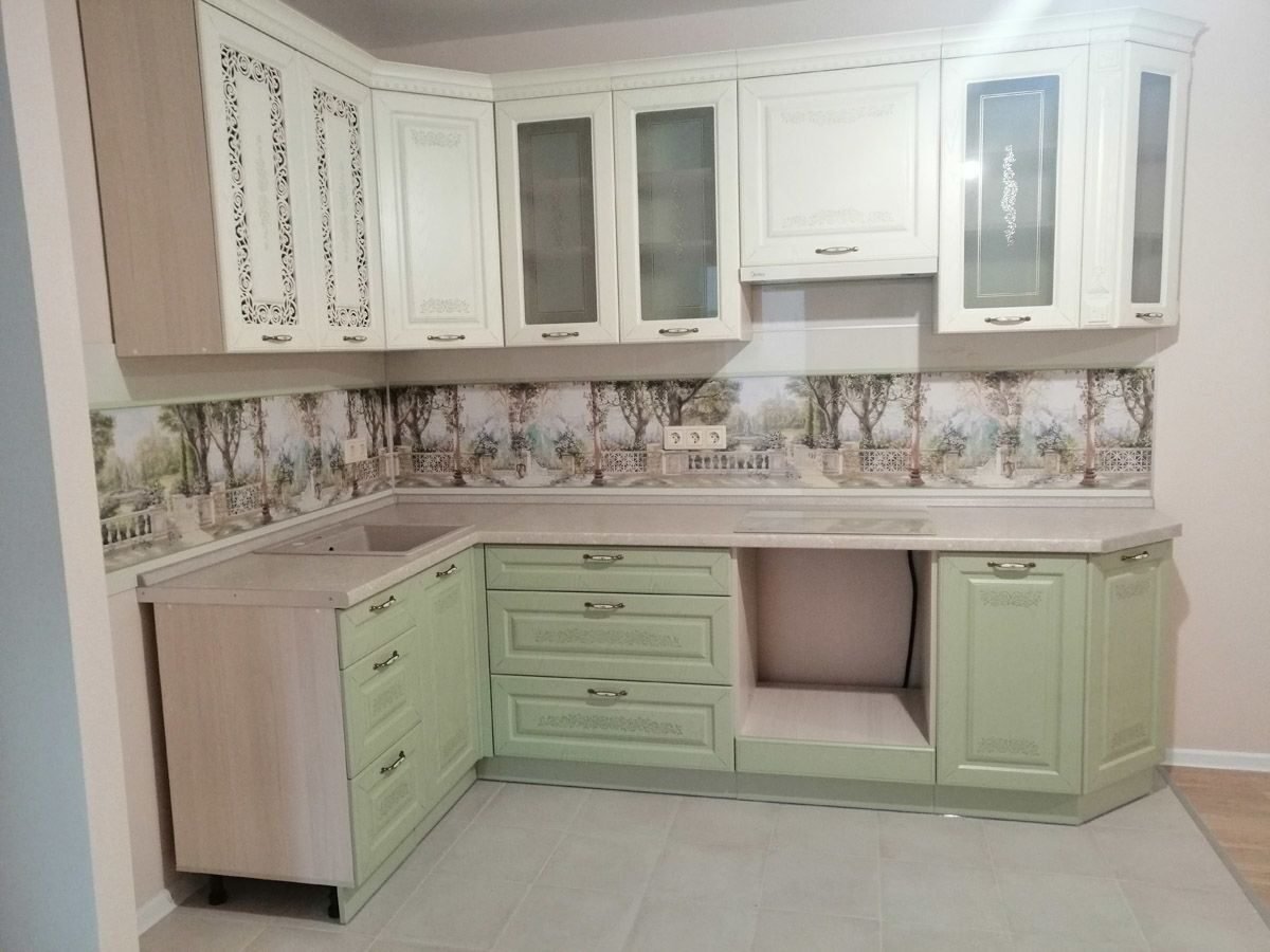 Кухня в стиле Прованс фисташкового цвета