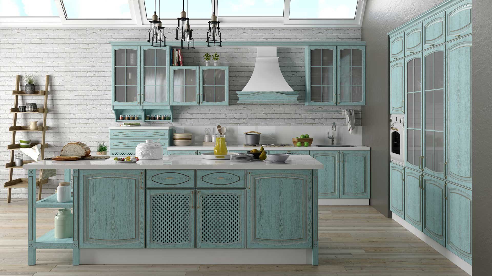 Кухня Кантри Прованс Неоклассика голубая