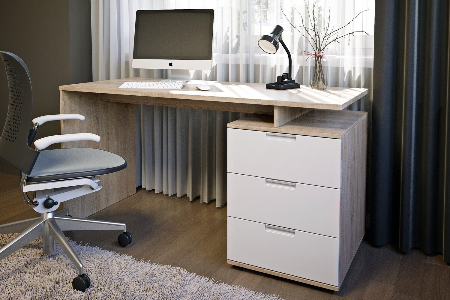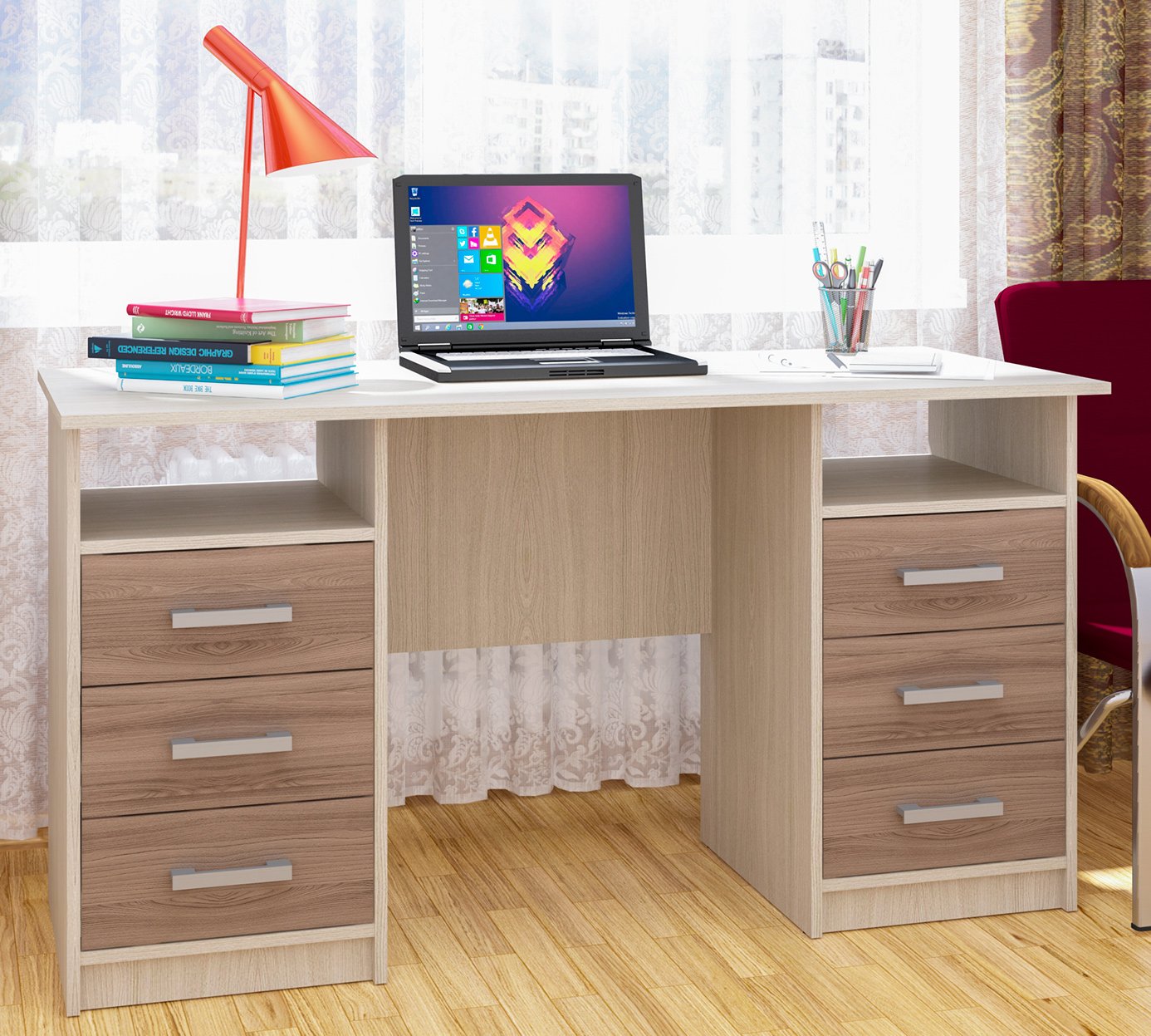 Стол письменный двухтумбовый дуб молочный