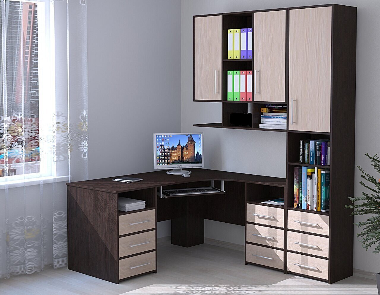 Стол компьютерный Рубин 1521х500х1700 венге/дуб Млечный