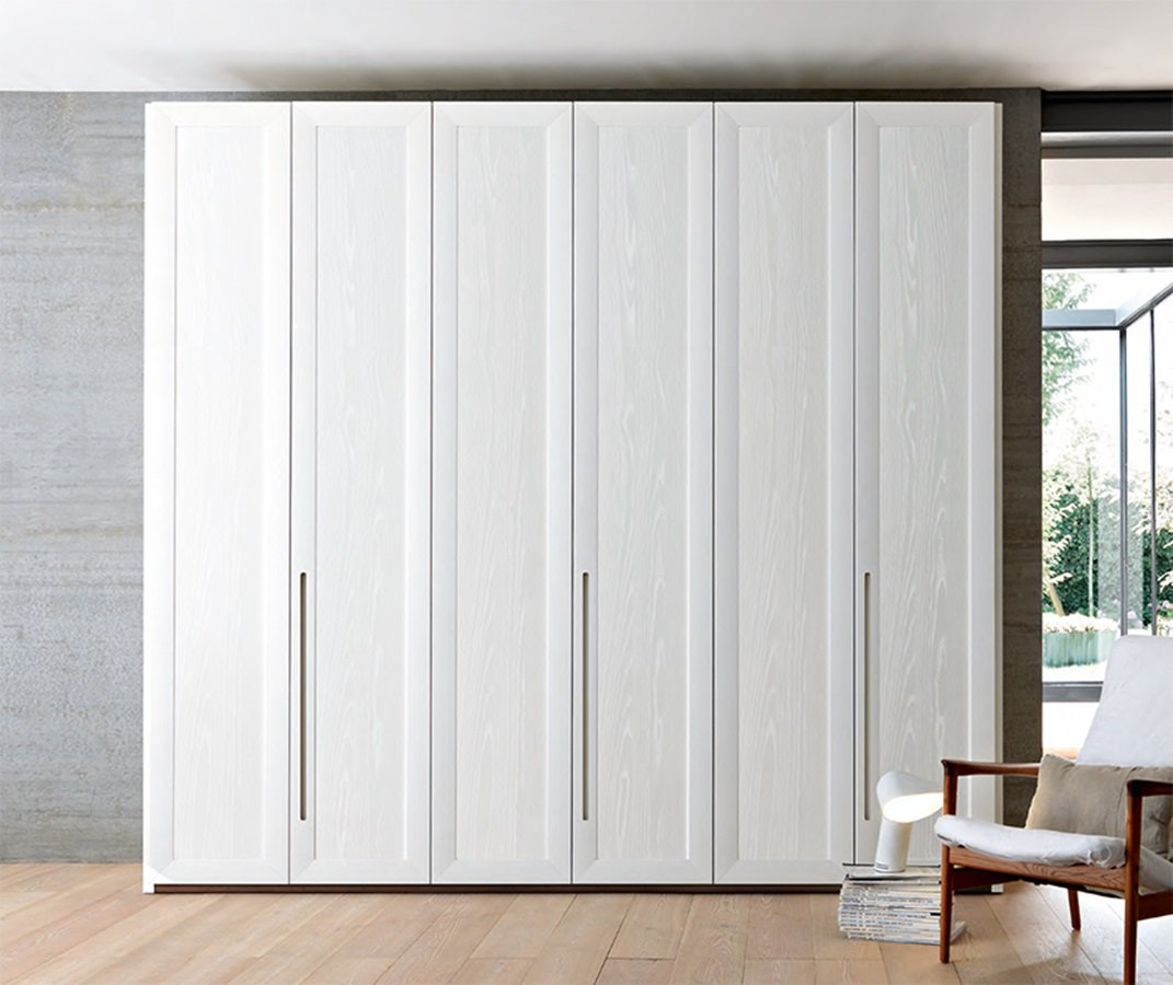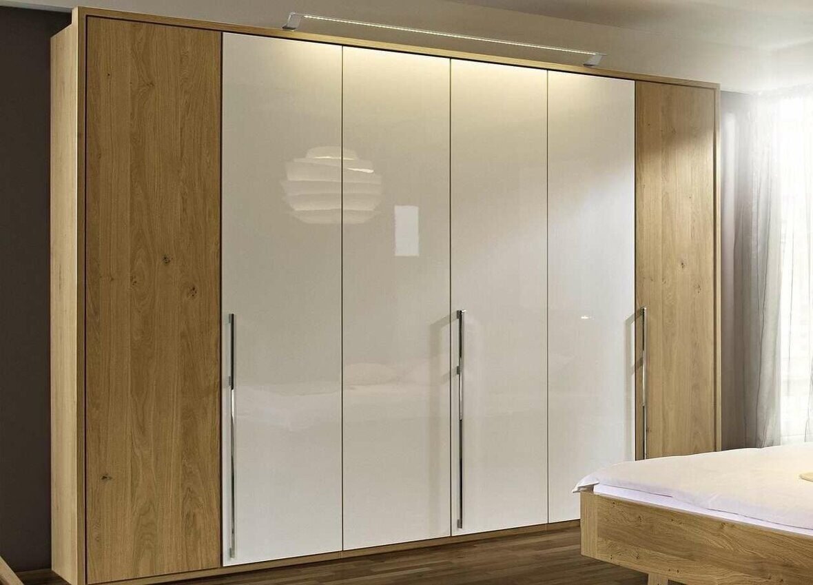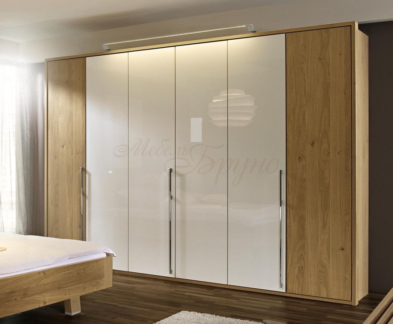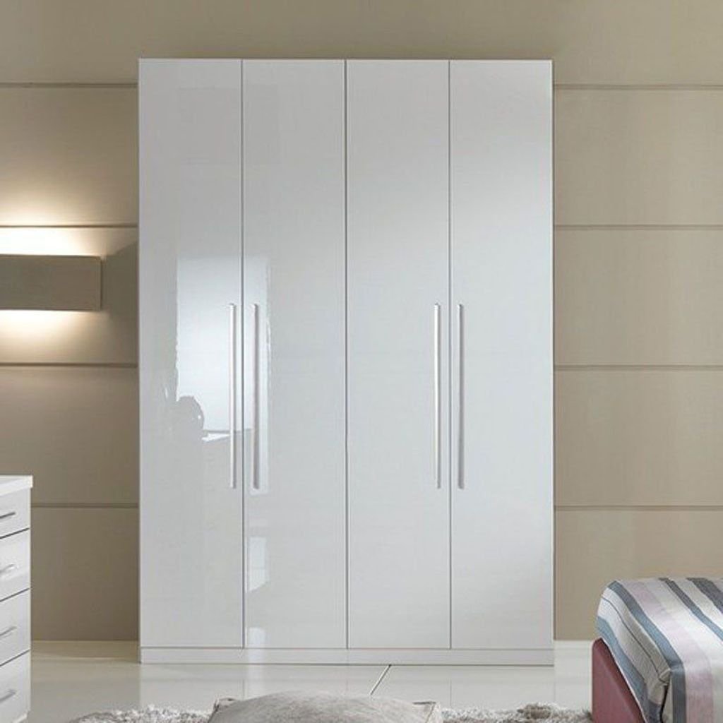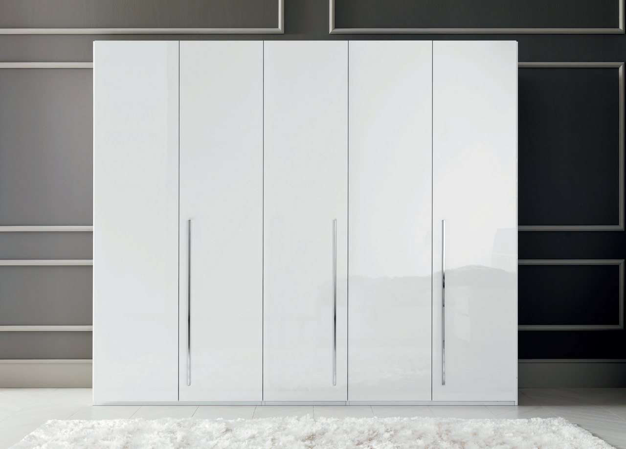 Белый глянцевый шкаф с распашными дверями в прихожую