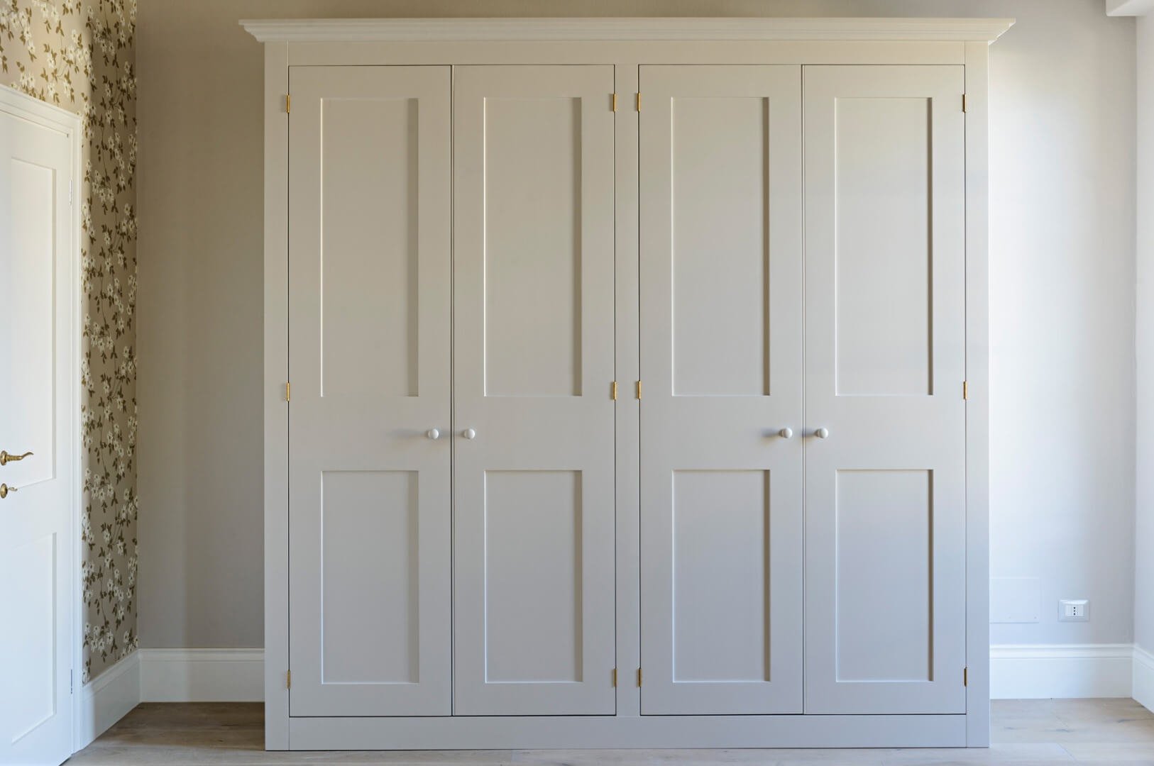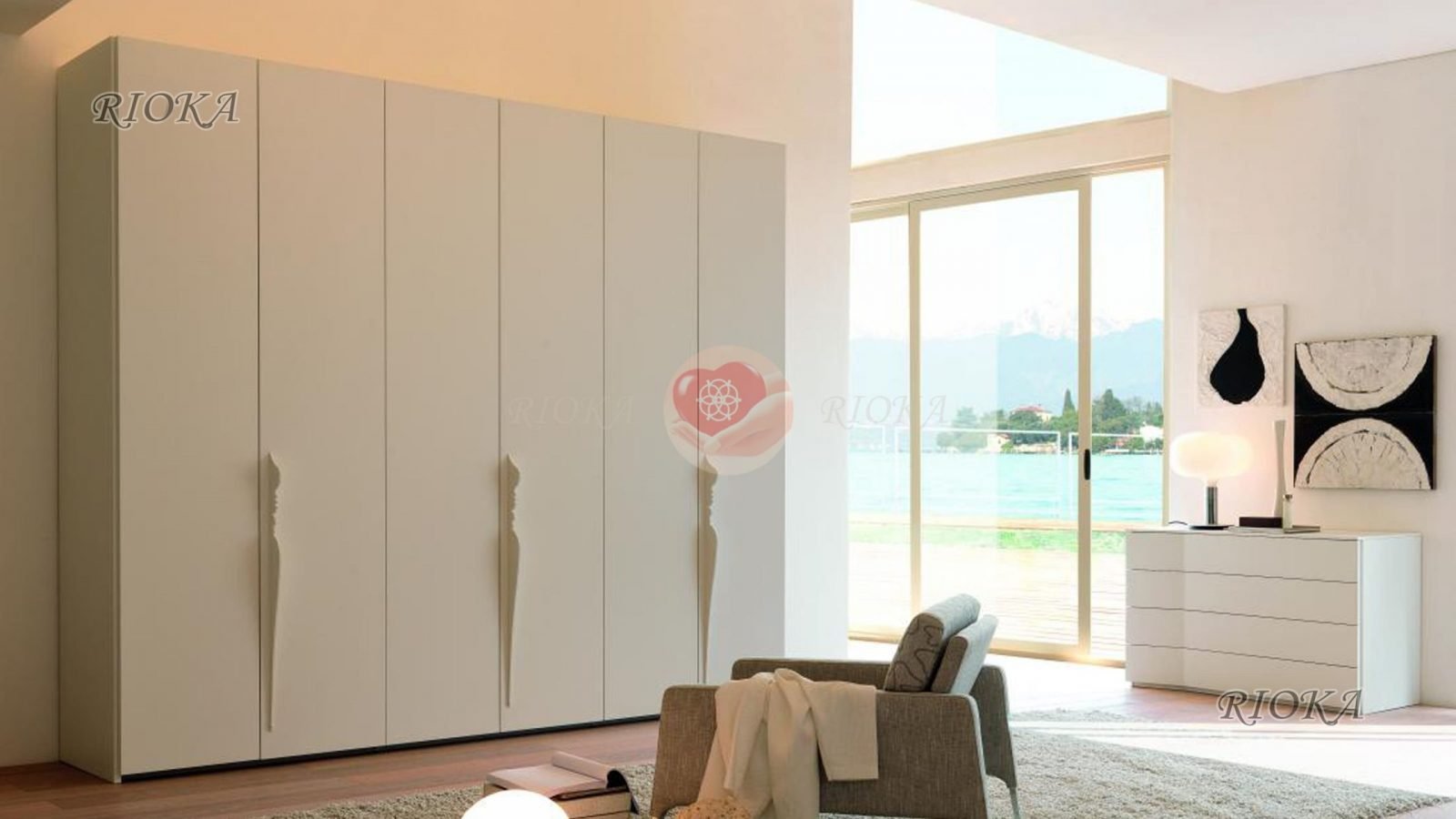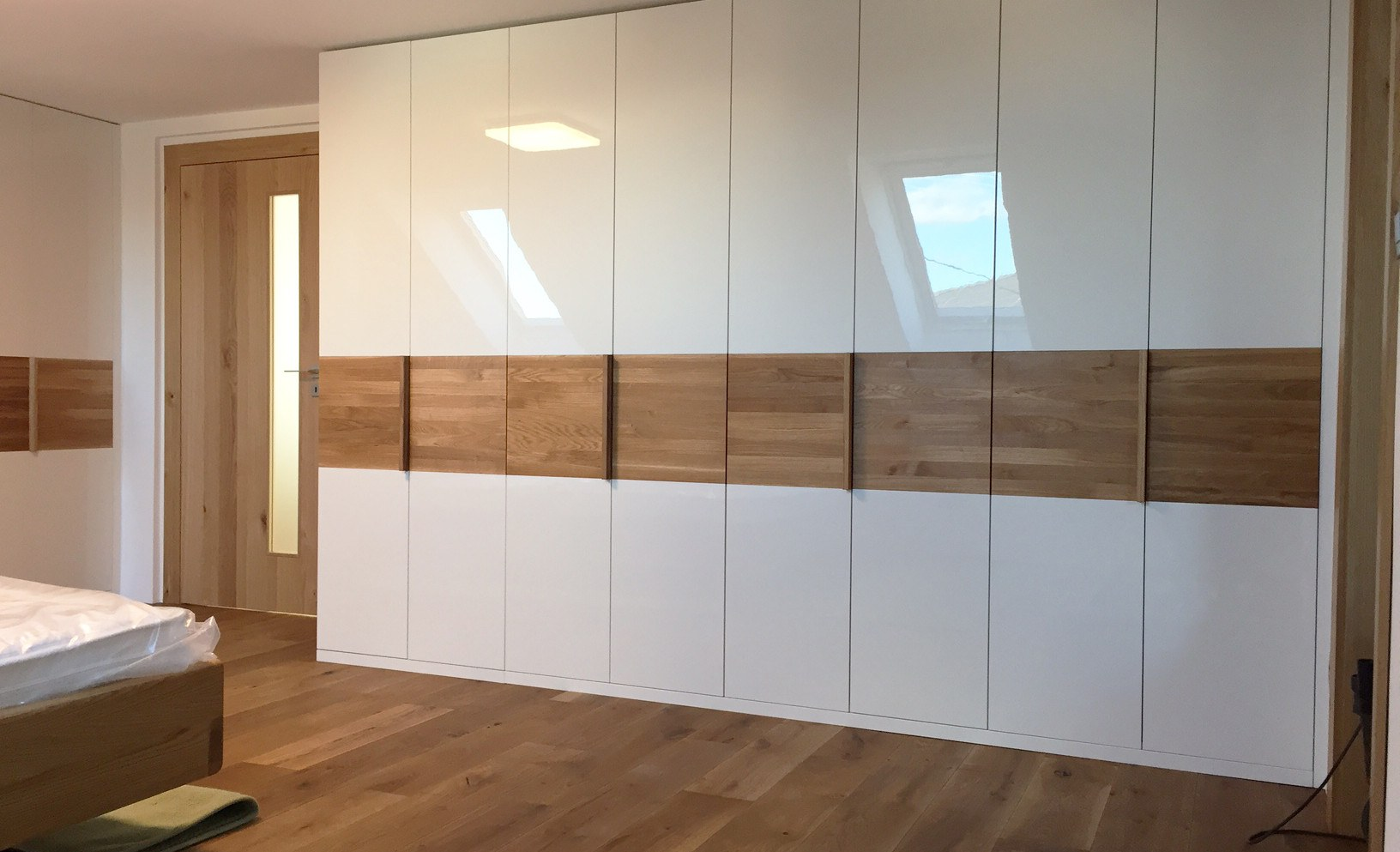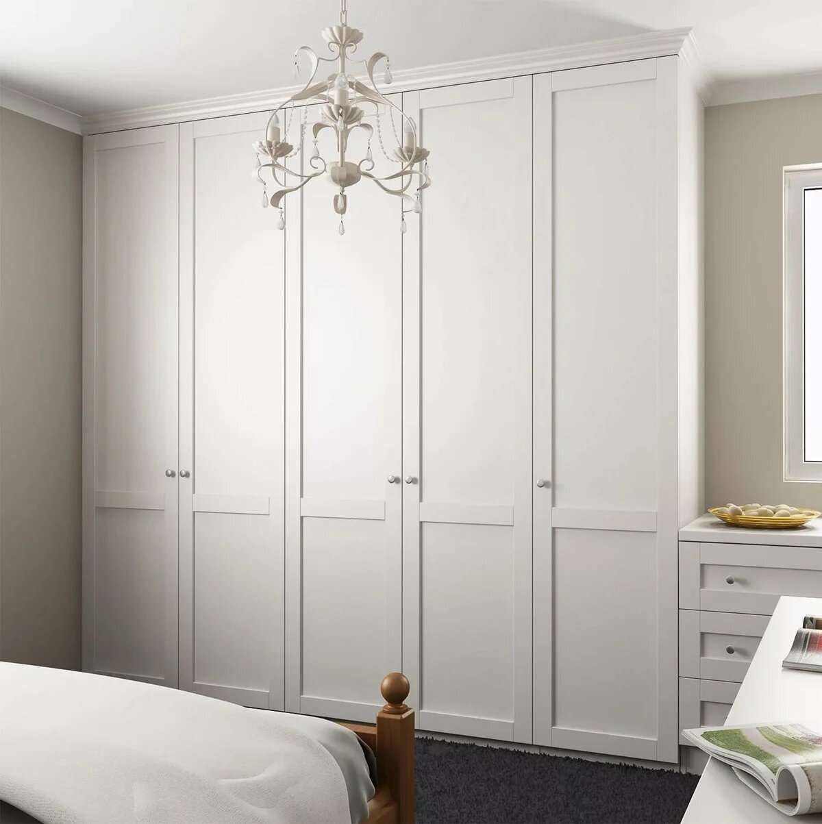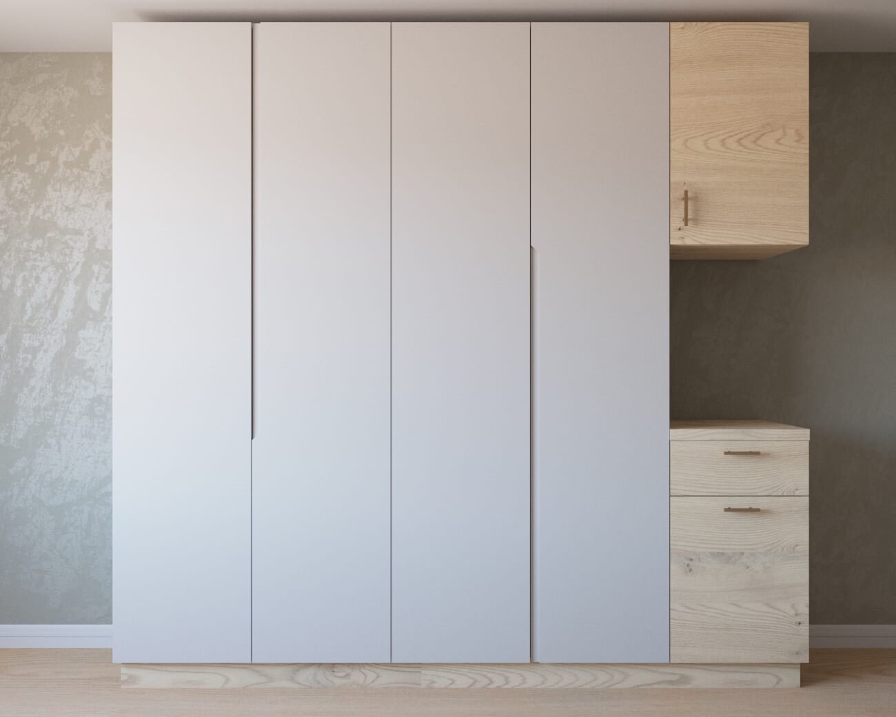 Белый глянцевый шкаф с распашными дверями в прихожую