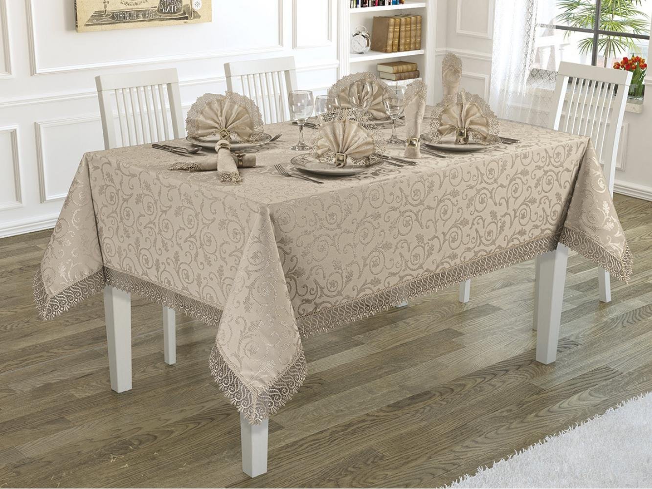 Скатерть "Karna" KDK С гипюром прямоугольная 160х220 см (белый)