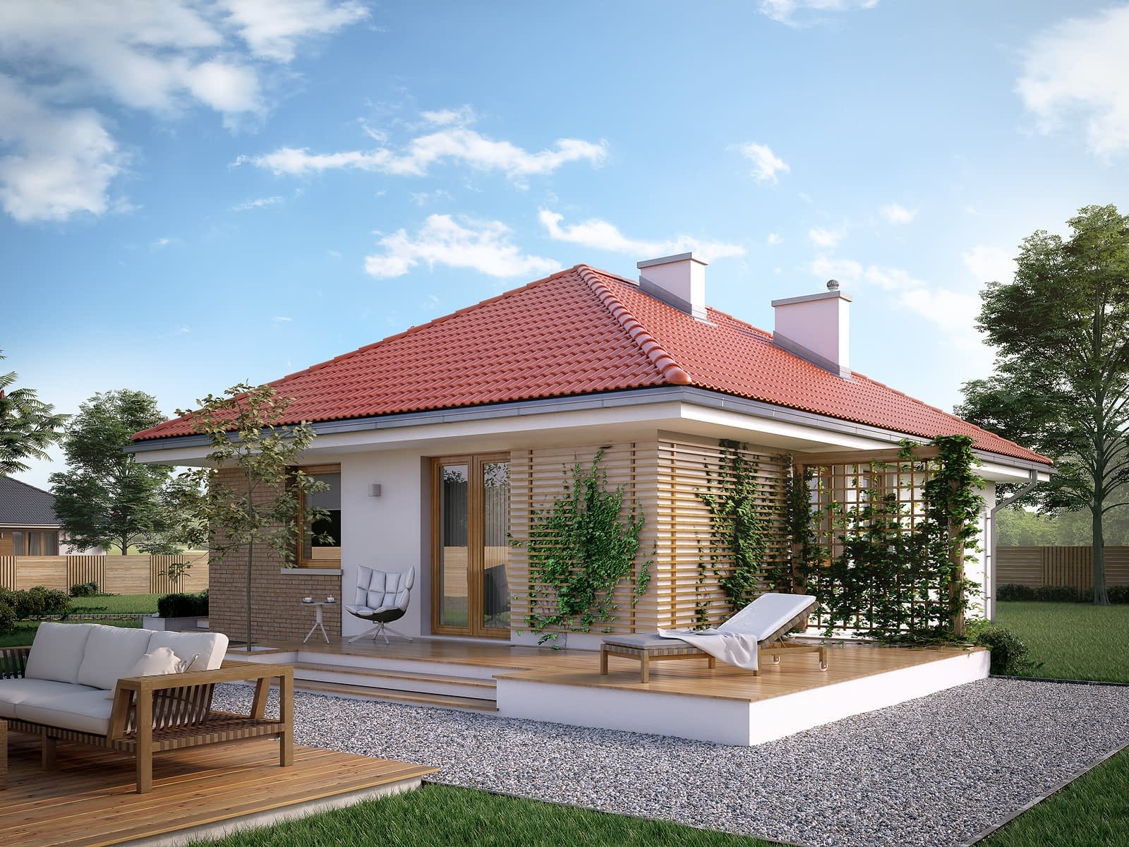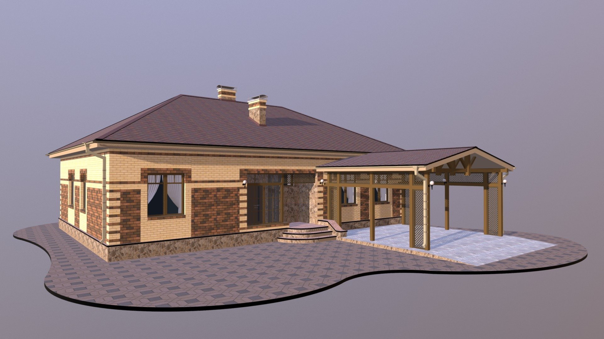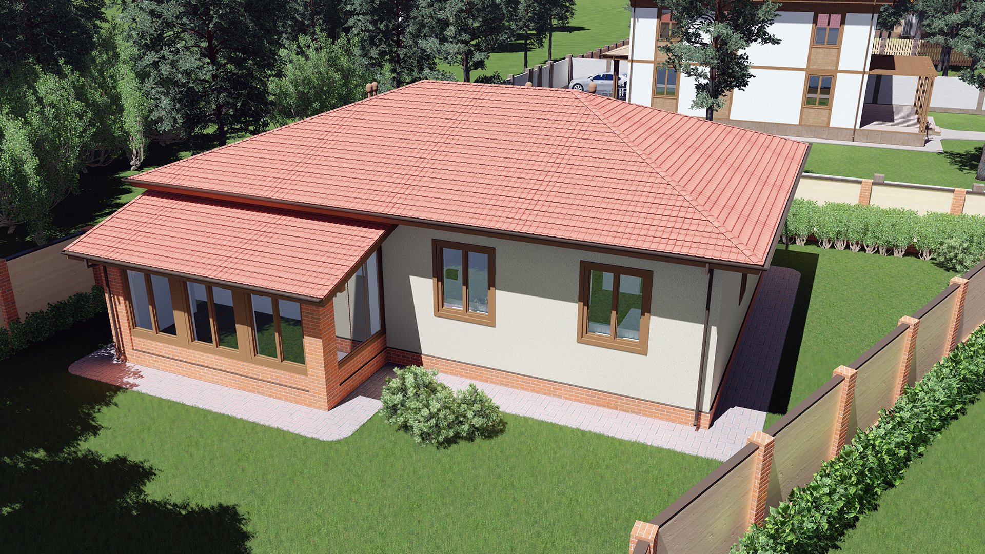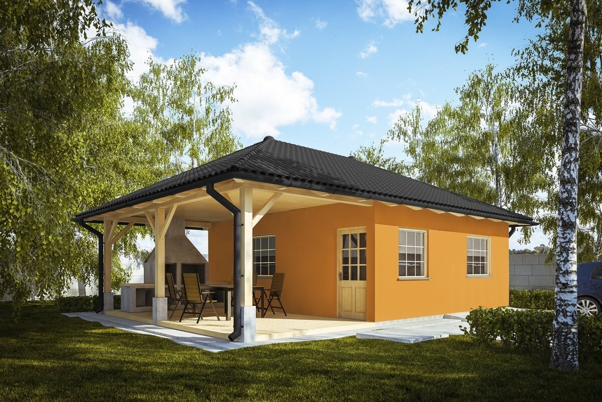 Одноэтажный дом с пристроенной террасой