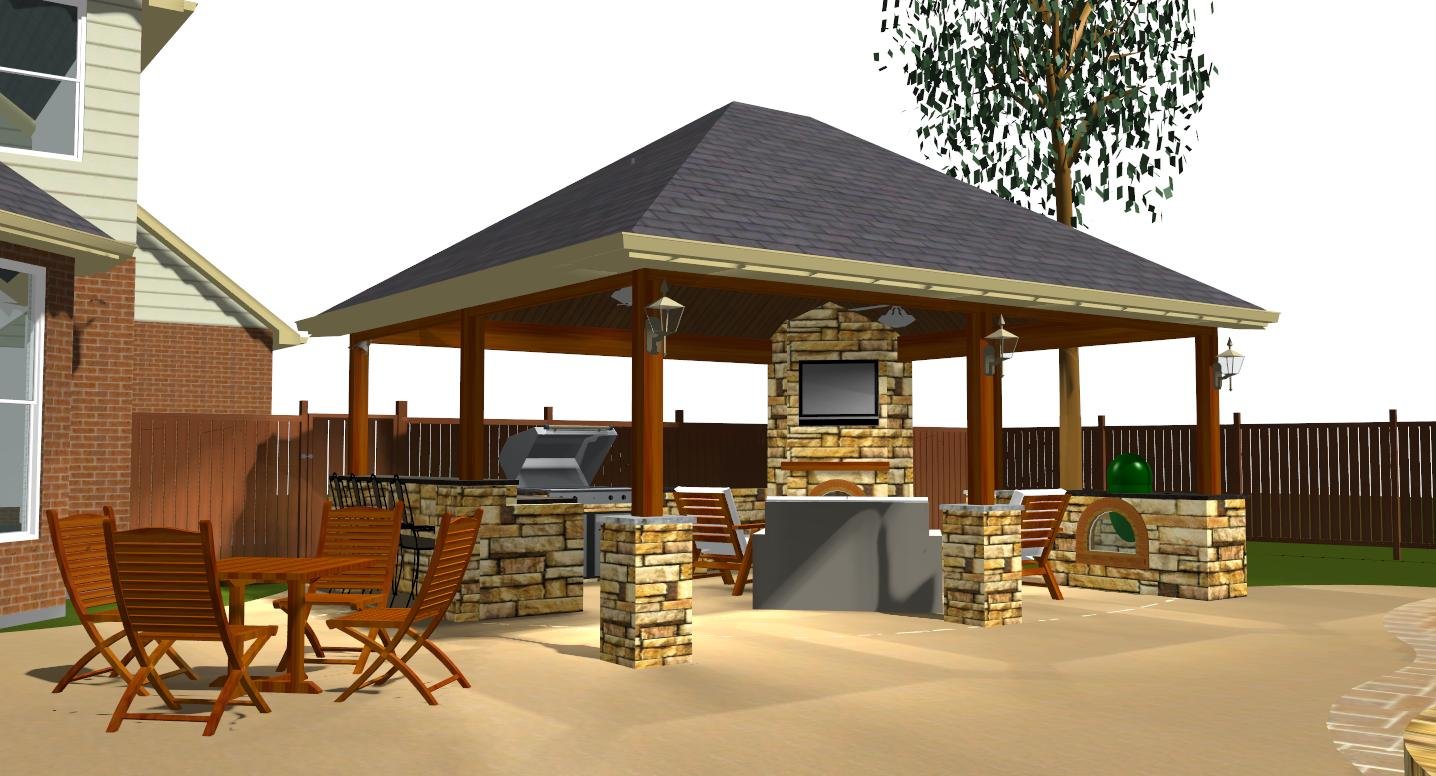Беседка с четырехскатной крышей и мангалом