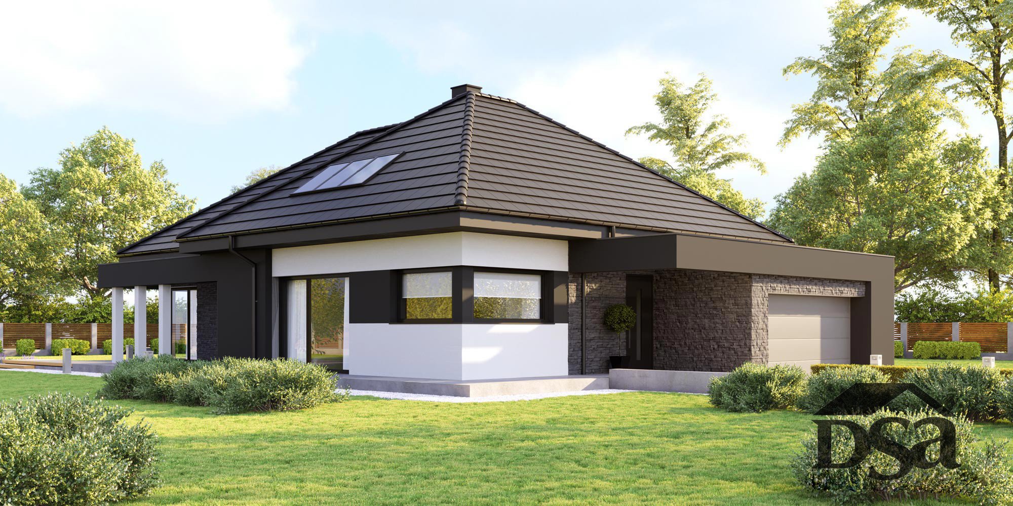 Фасады одноэтажных домов с вальмовой крышей