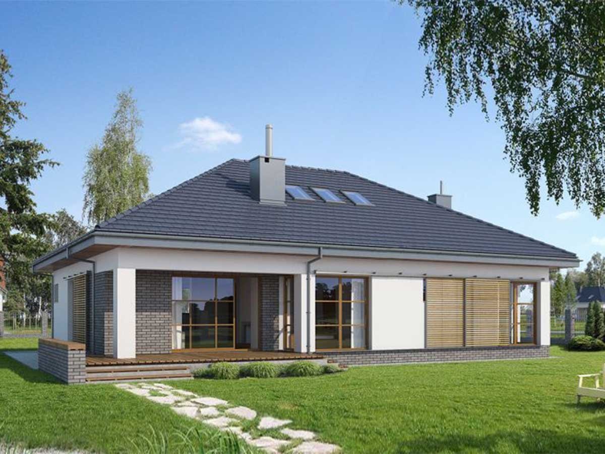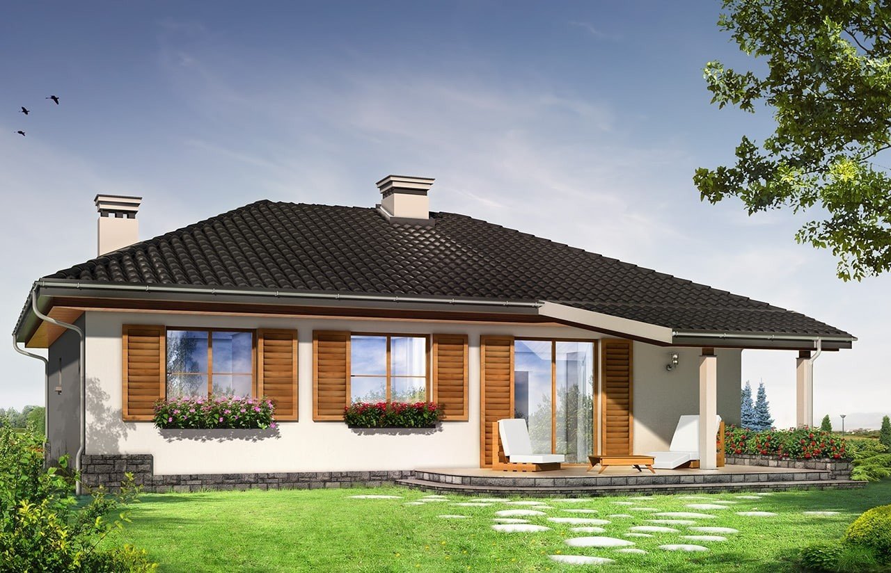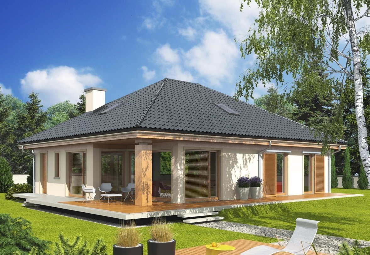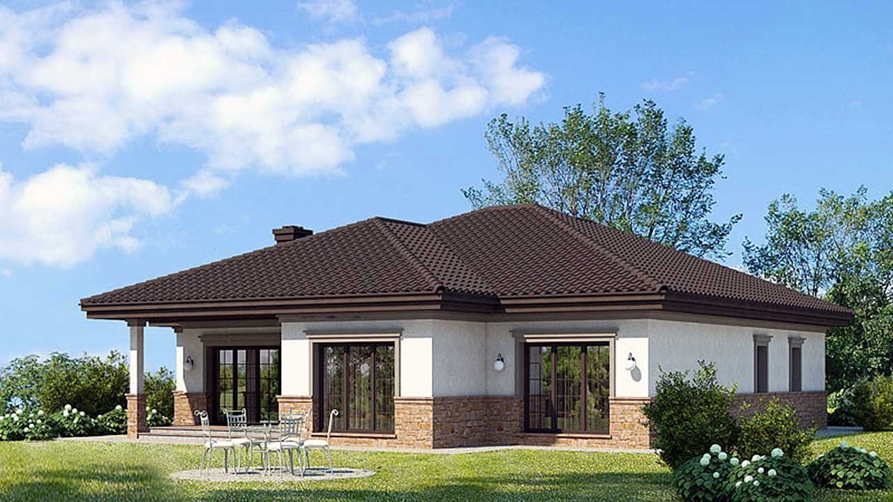 Проекты одноэтажных домов с четырехскатной крышей