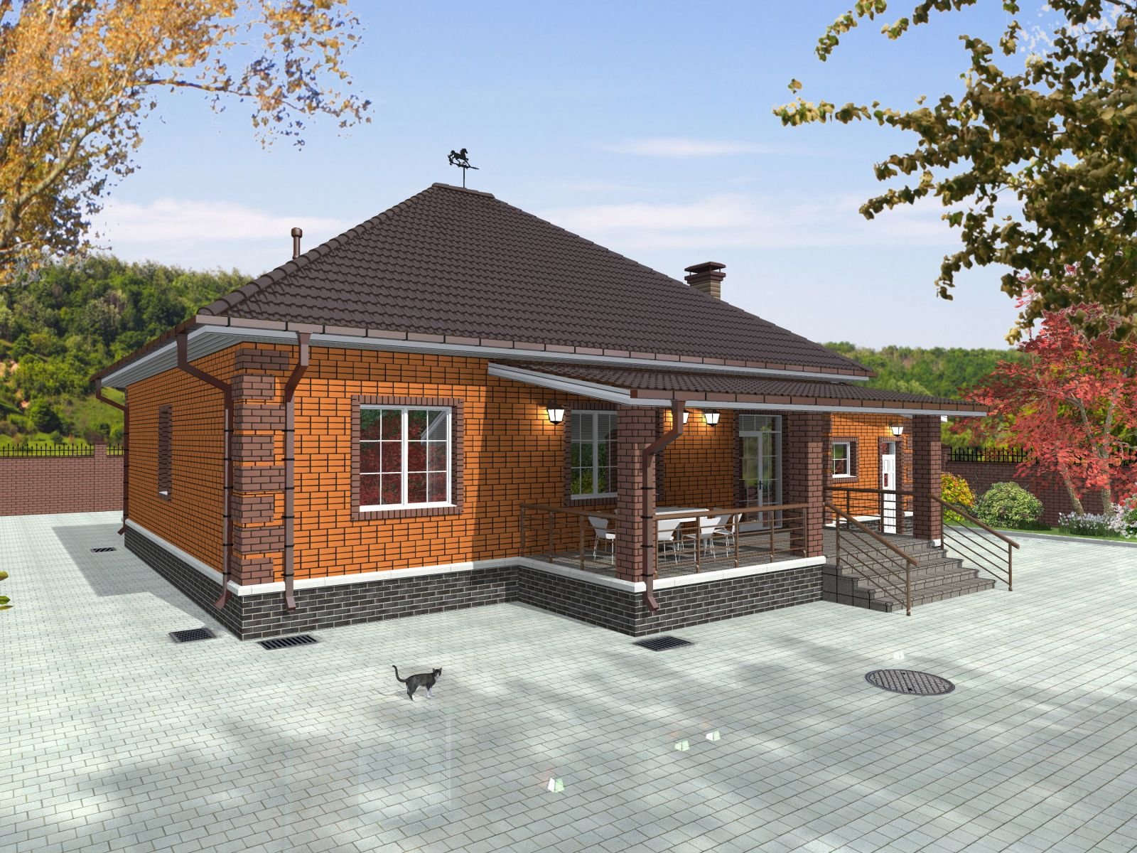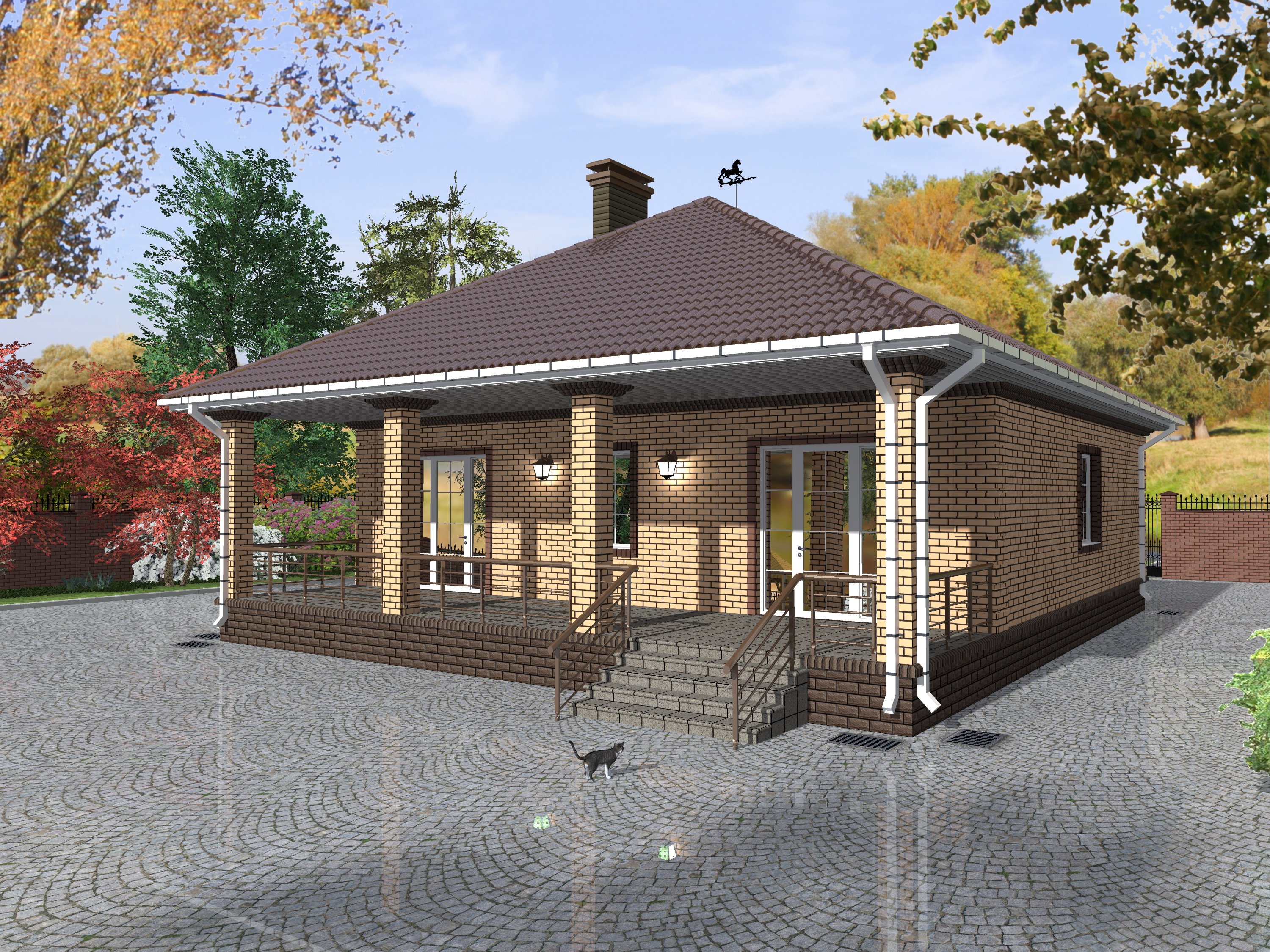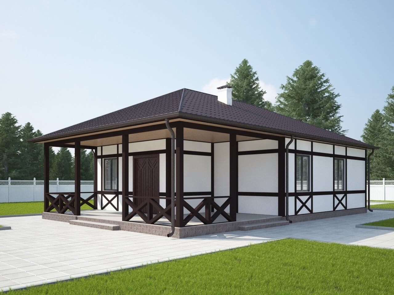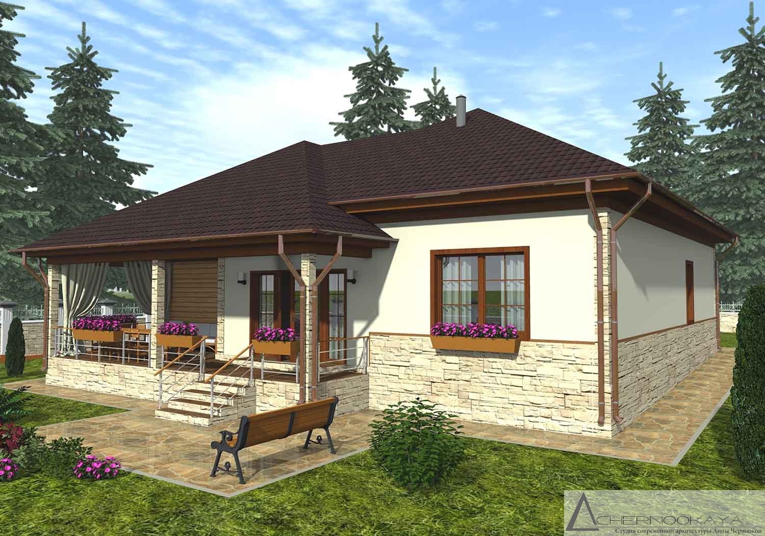 Одноэтажный дом с верандой