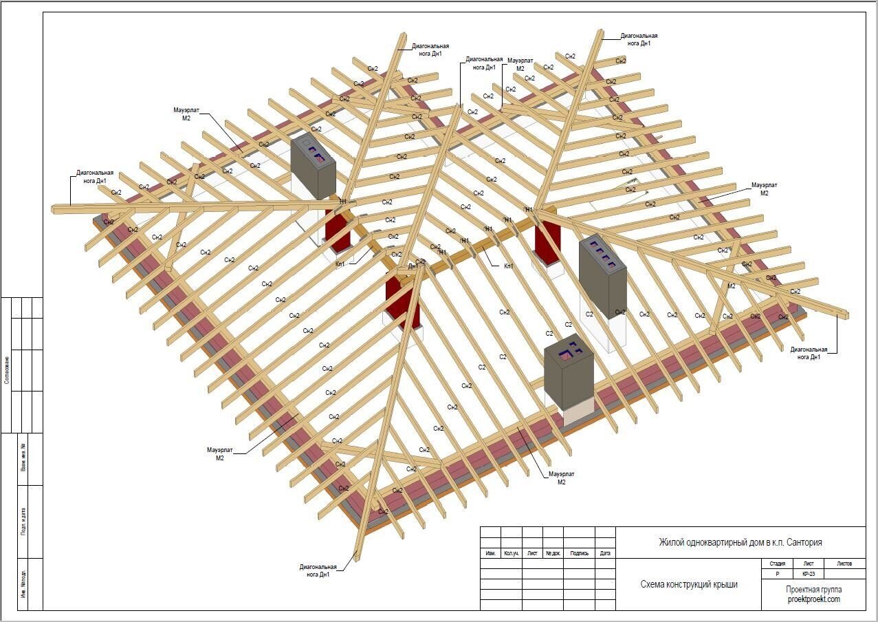 План стропил четырехскатной крыши