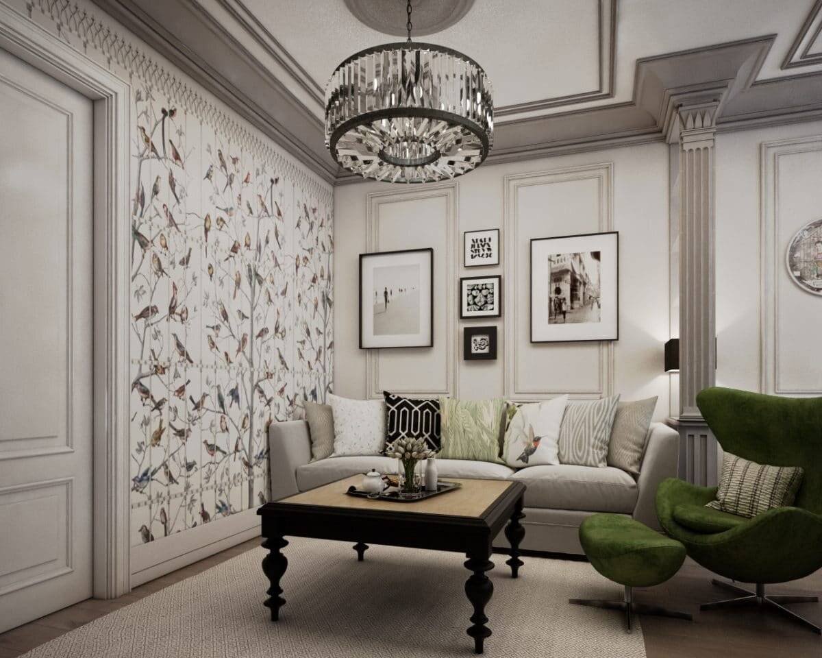 Линкруста в интерьере гостиной в стиле Неоклассика