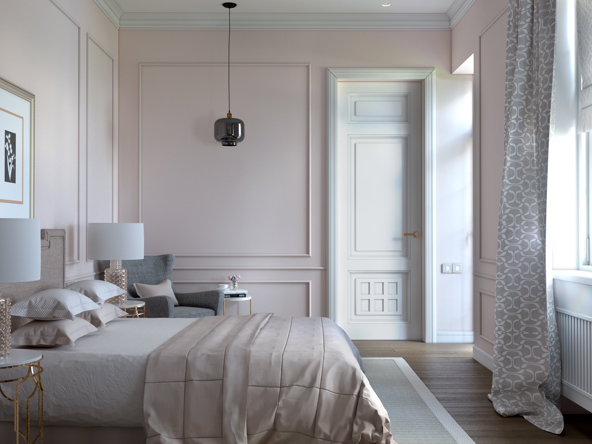 Молдинги в интерьере спальни