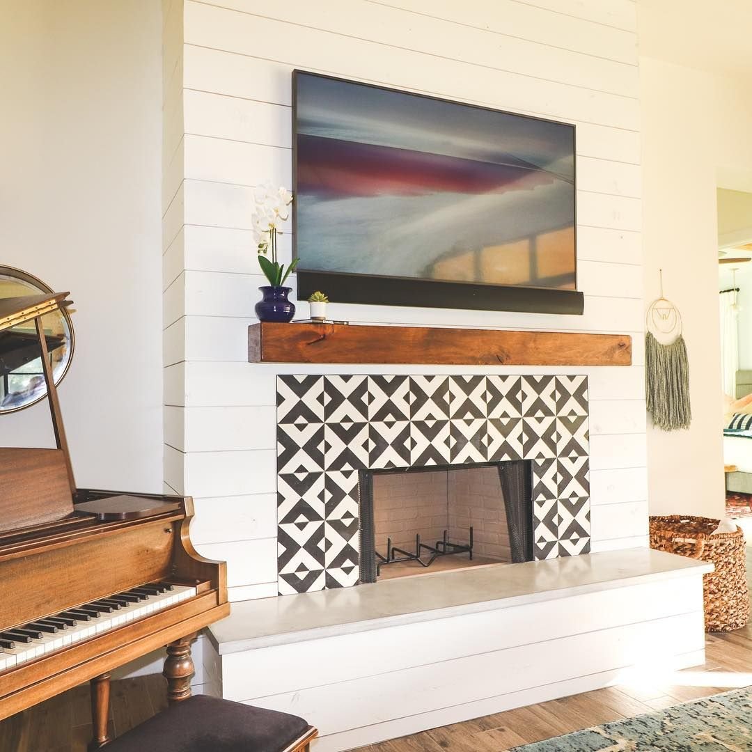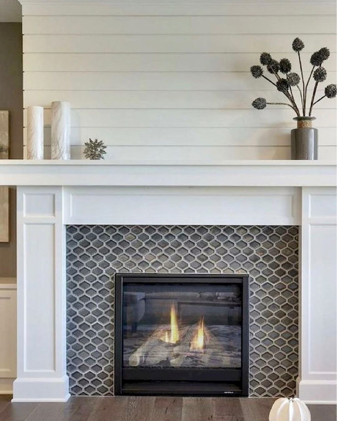 Декорация камина белой плиткой