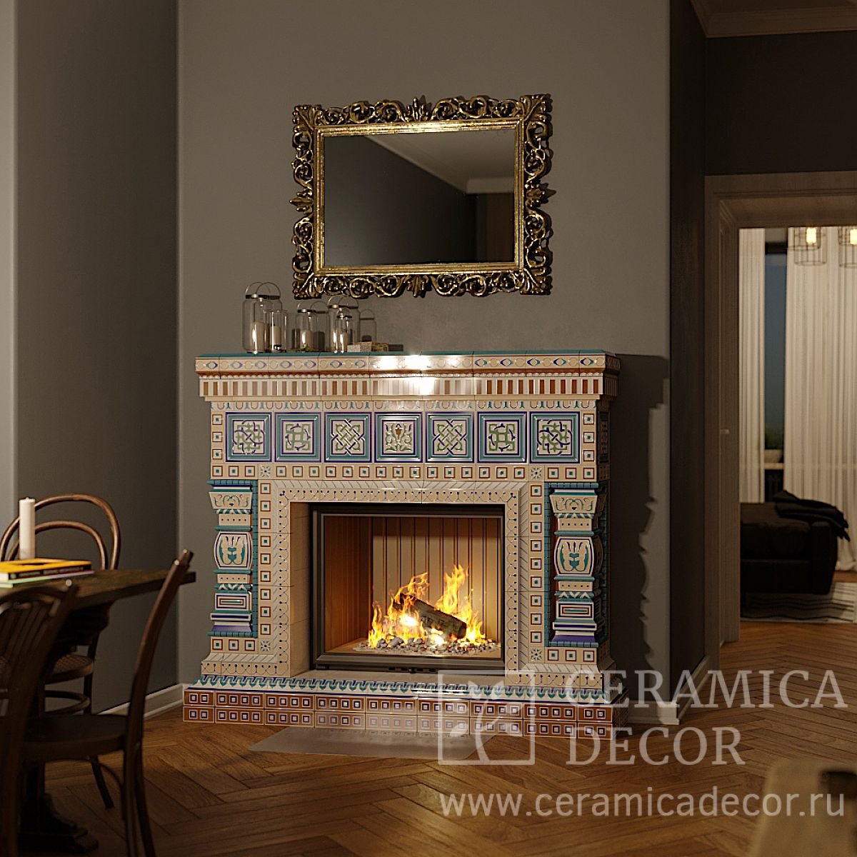 Панно из плитки на камин