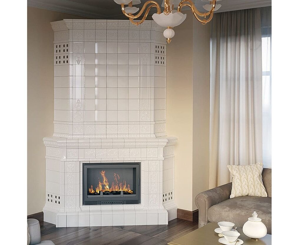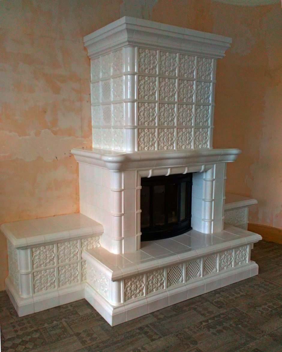 Камин белый изразцов