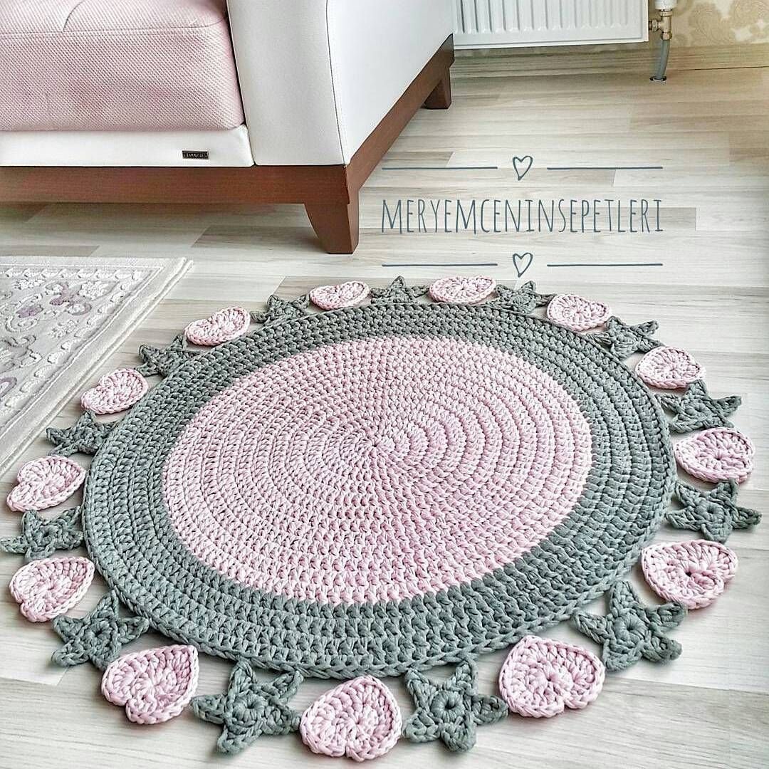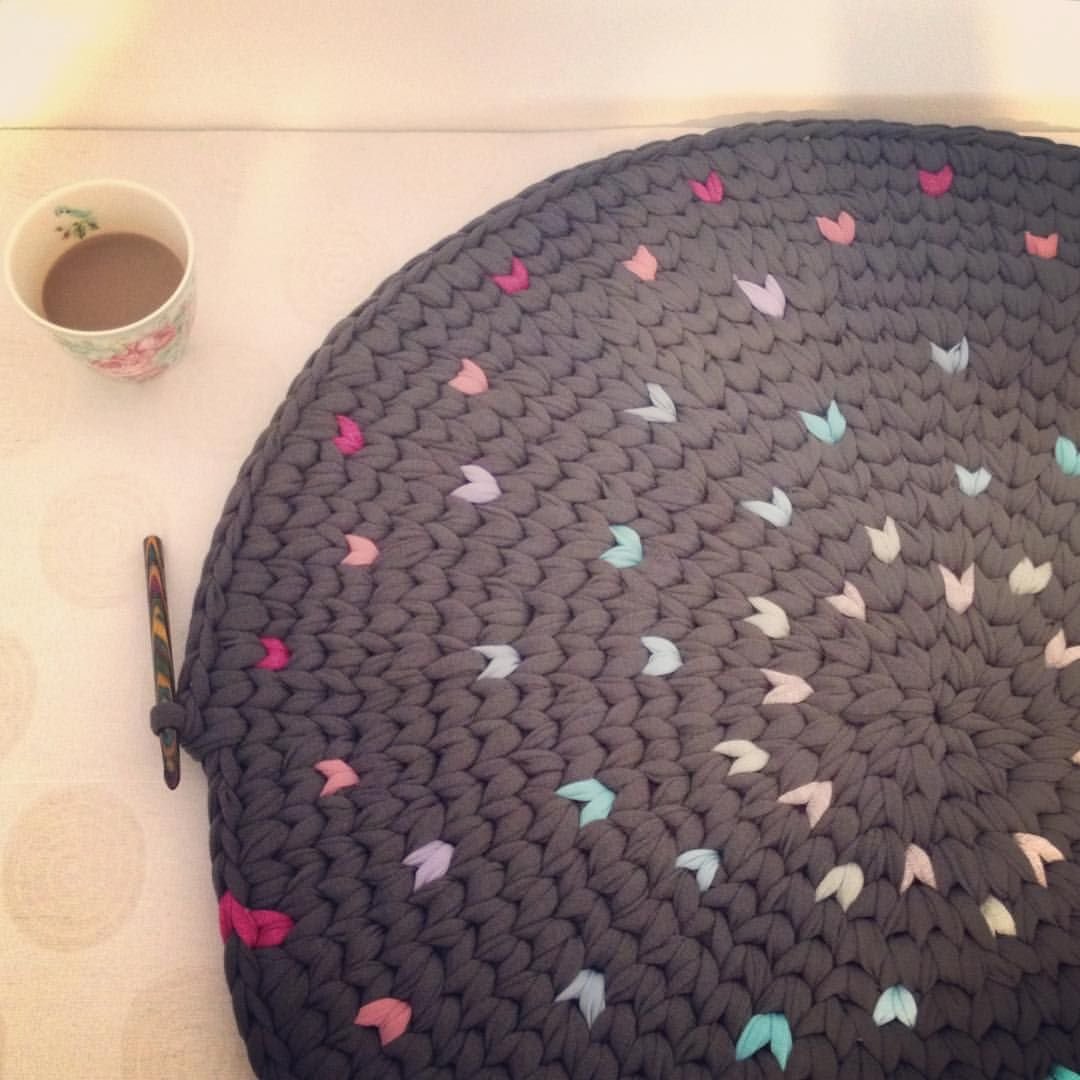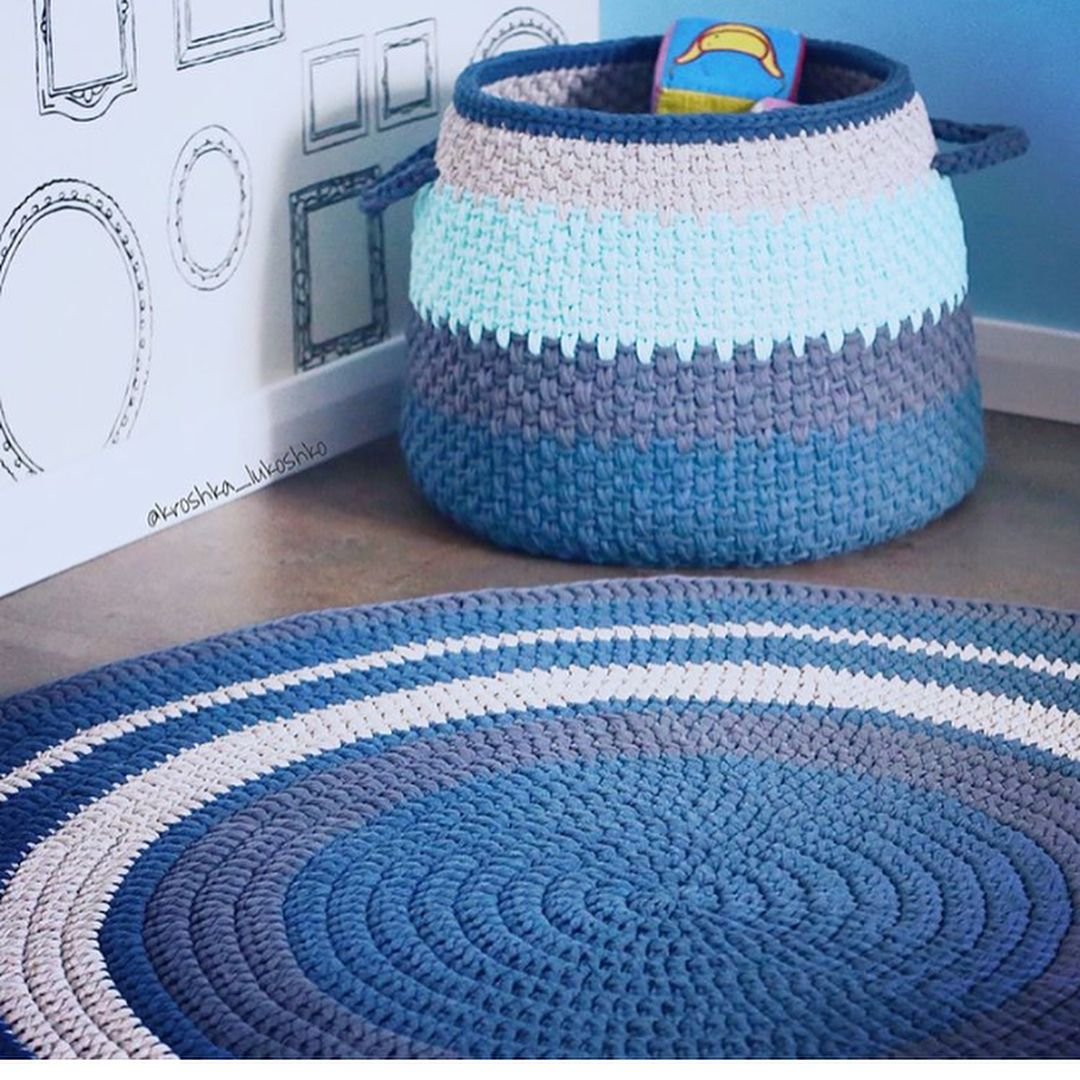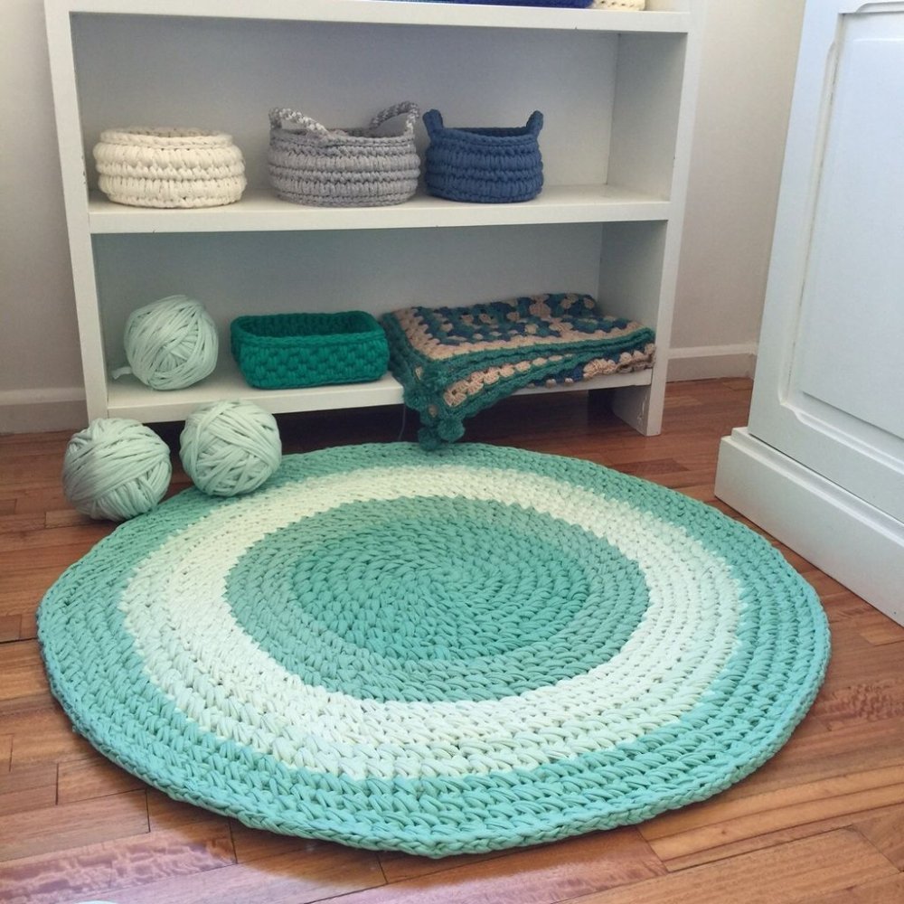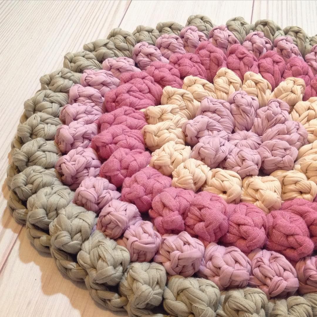 Коврик из трикотажной пряжи крючком круглый в детскую