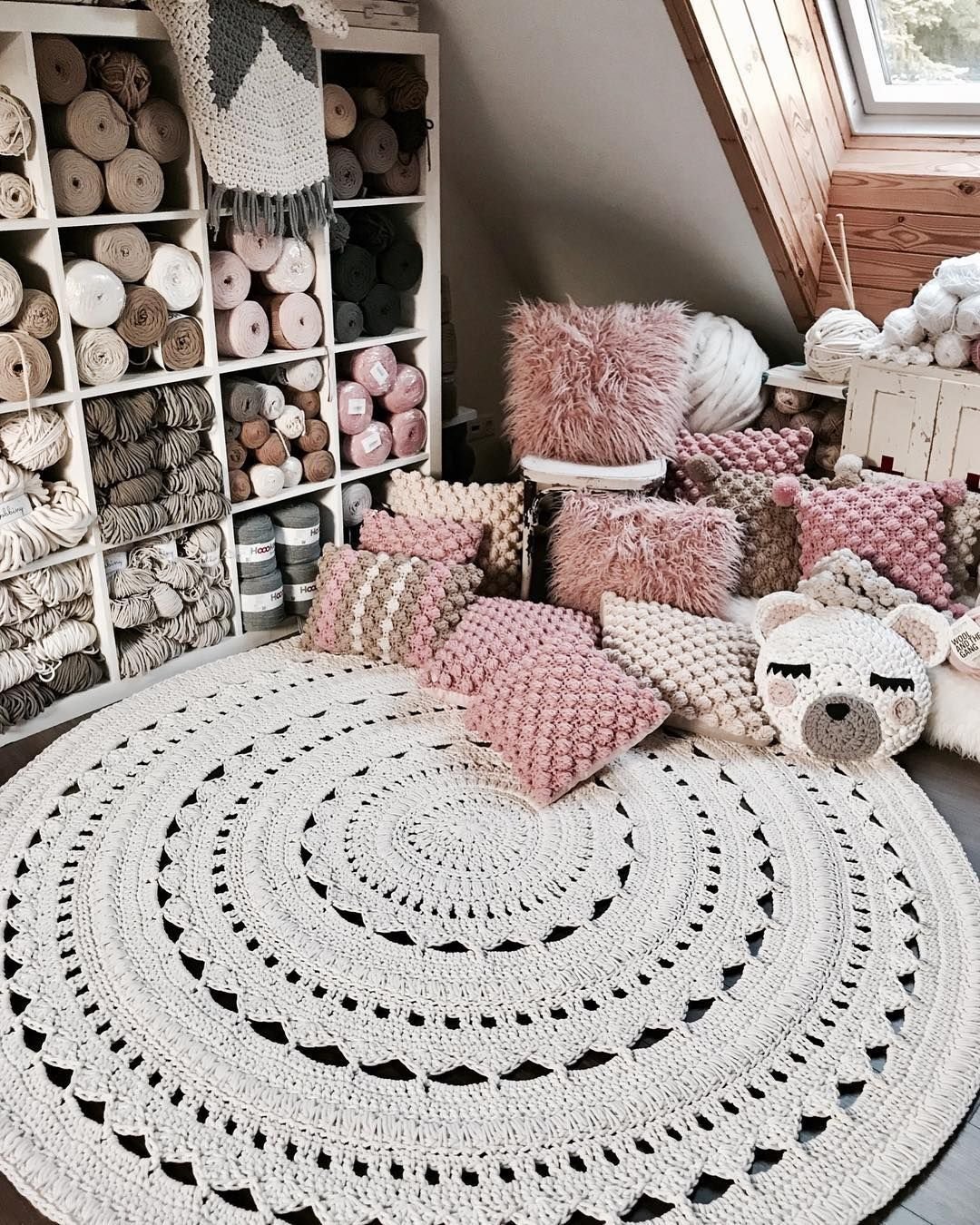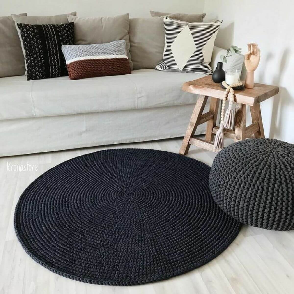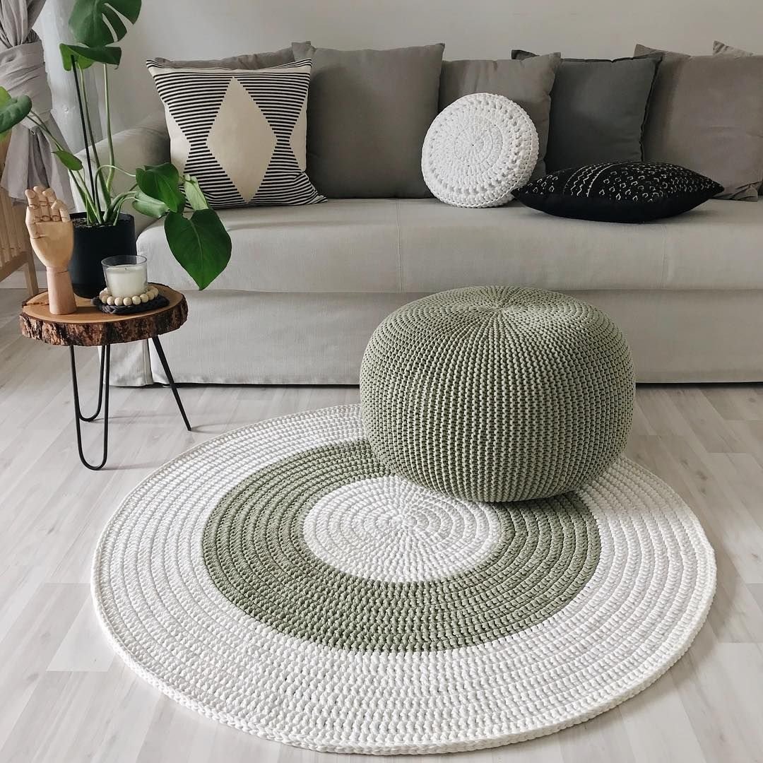 Круглый вязаный коврик в скандинавском стиле