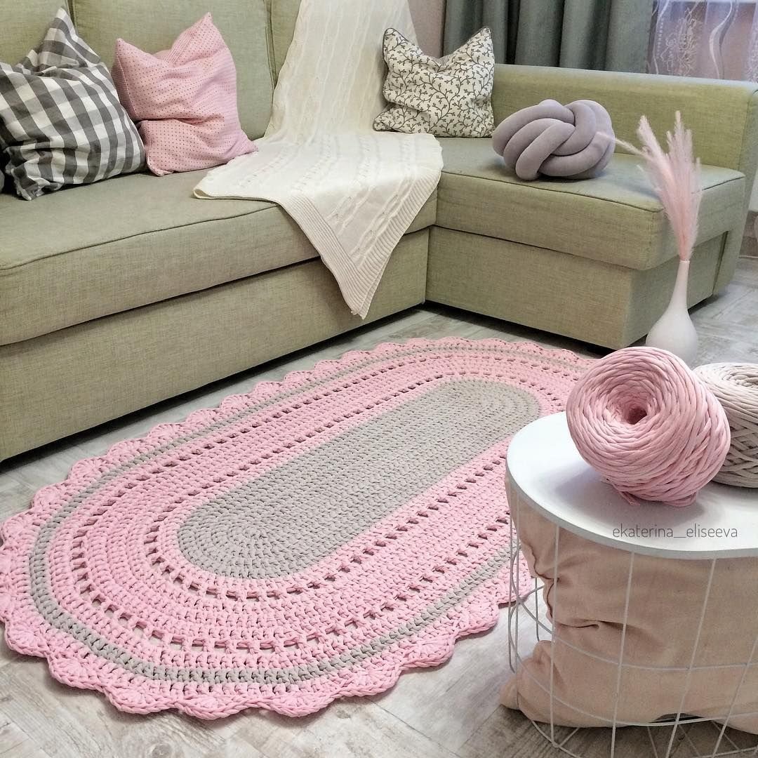 Схема коврика крючком из трикотажной пряжи овальный