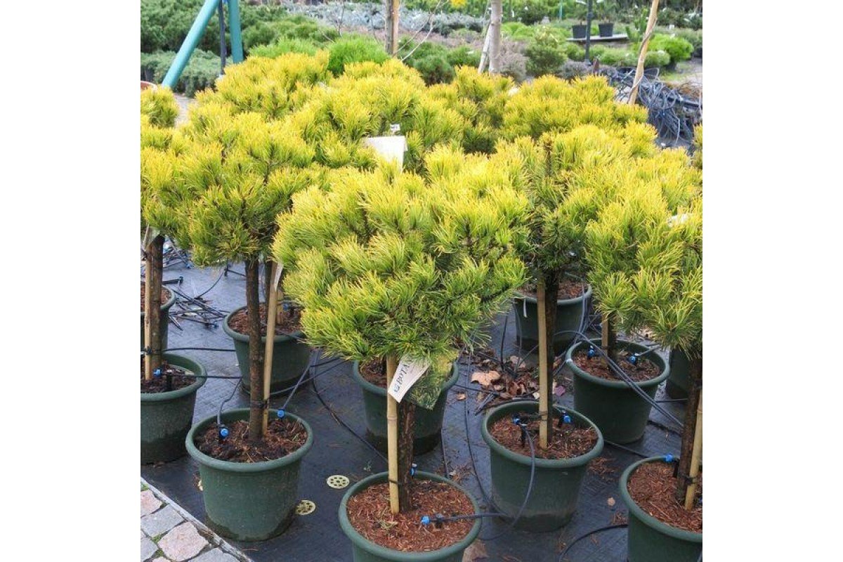 Pinus mugo Winter Gold на штамбе